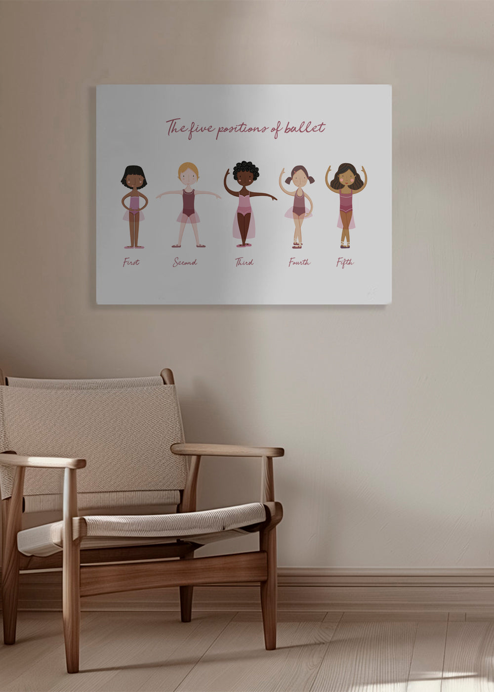Tableau pour chambre d'enfants Las 5 posiciones de ballet (lila)