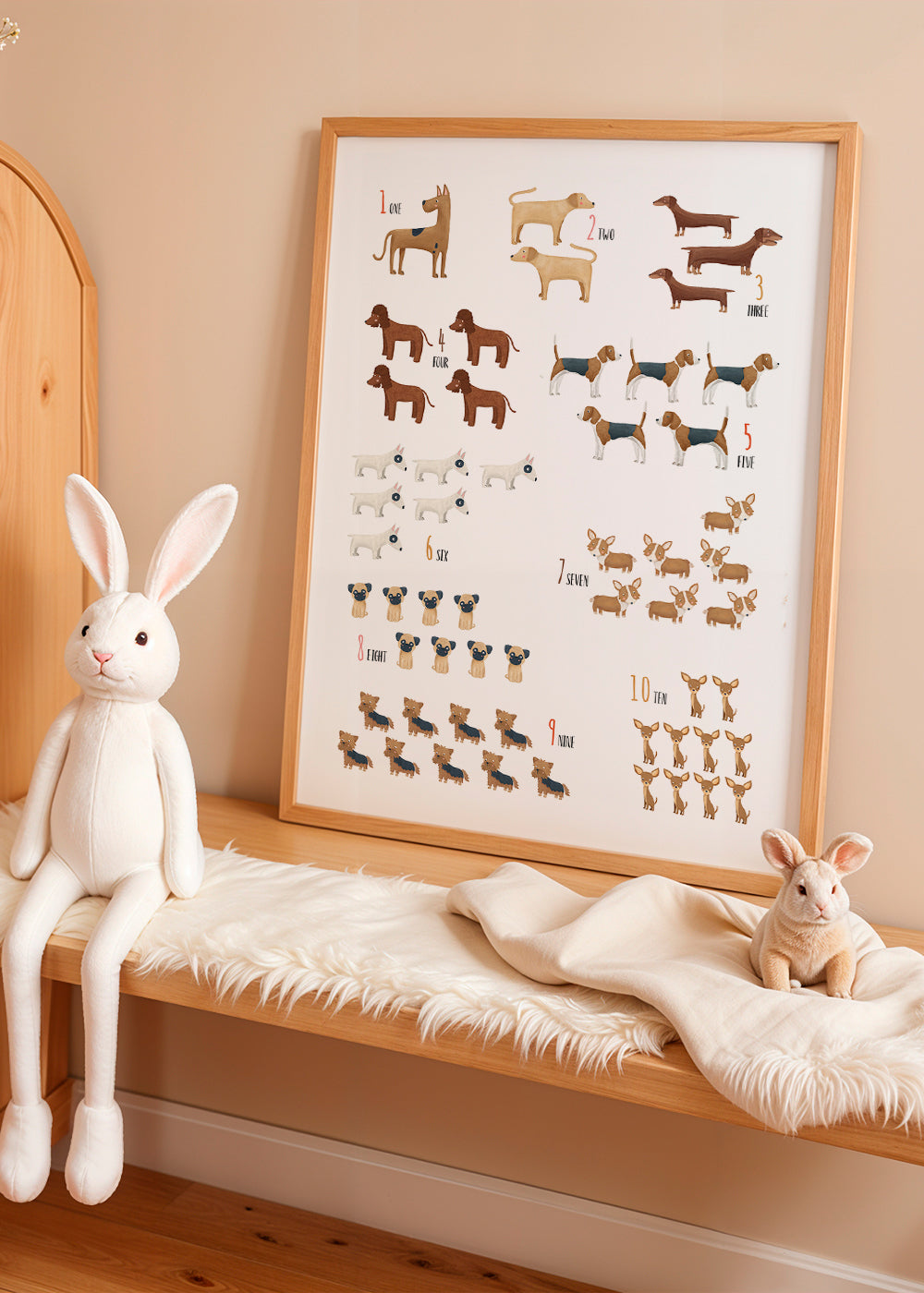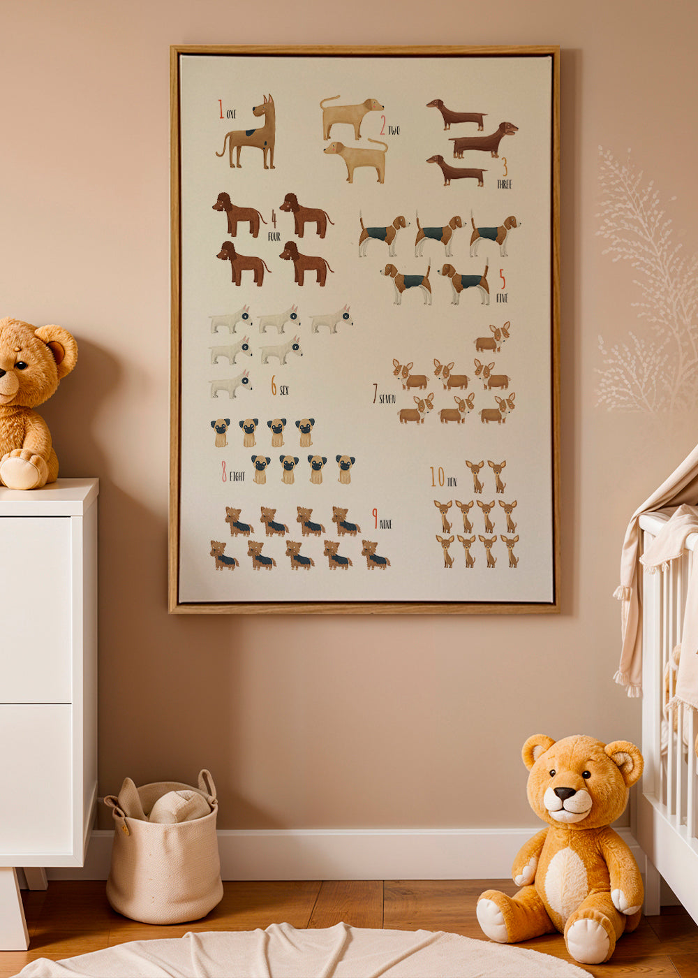 Tableau pour chambre d'enfants Numeros del 1 al 10 (perros)