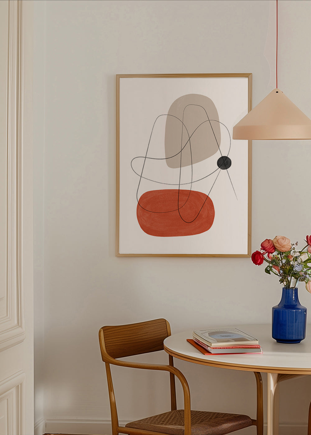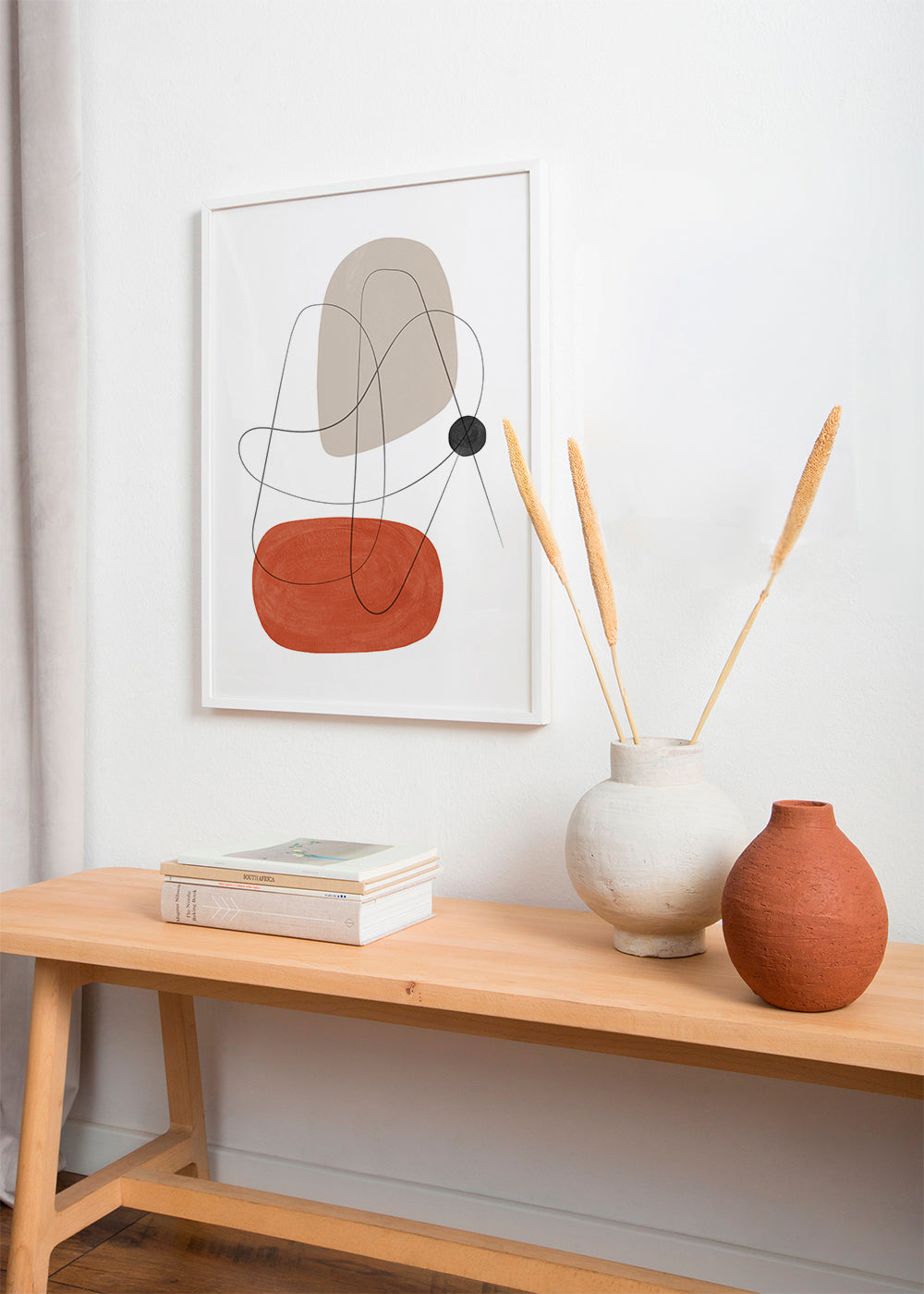 Beau modèle avec l'inspiration dans la collection tableaux géométrique, de la collection de l'artiste Nouveau Prints, dans des tons rouges, et en position portrait. L'art géométrique est un style élégant pour décorer les murs de la maison. Laissez vos murs raconter des histoires.