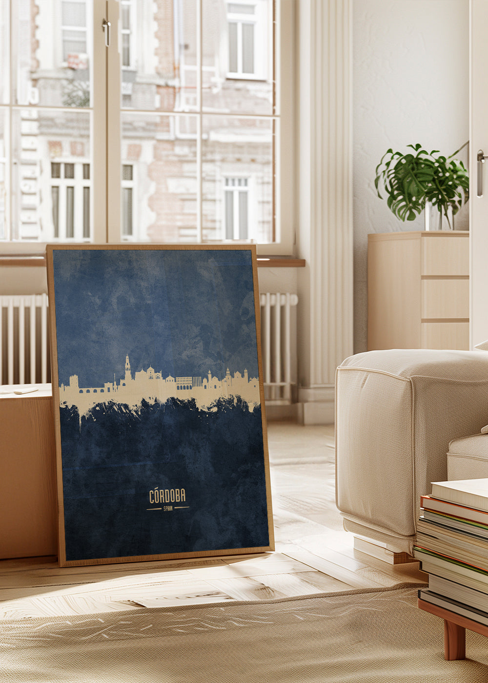 Cette oeuvre de notre ensemble skyline posters, de Michael Tompsett, en couleurs bleus, et dans une orientation portrait. Un tableau idéal pour les voyageurs invétérés. Combinez-les avec nos autres tableaux des cartes et villes . Créez l'environnement parfait.