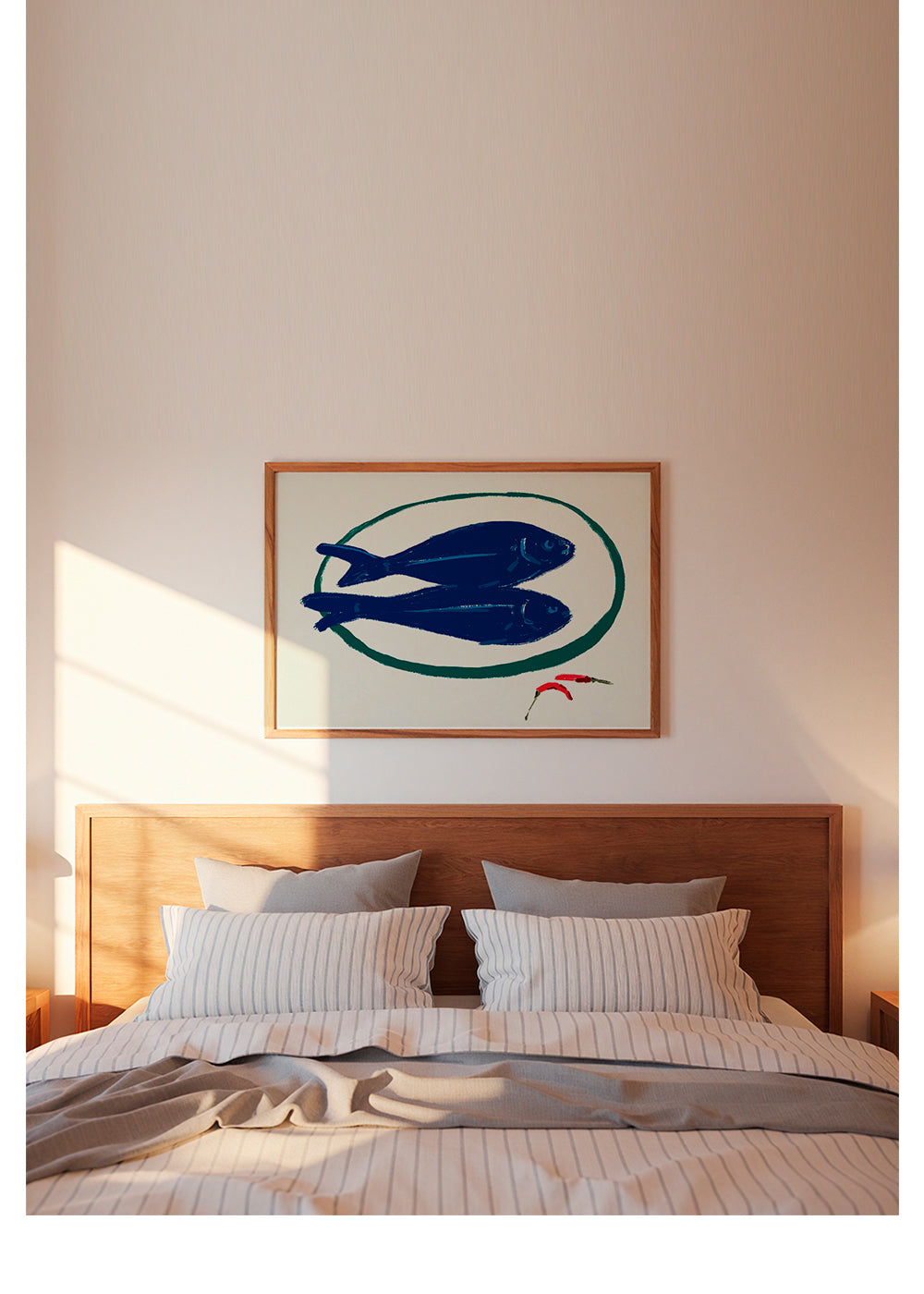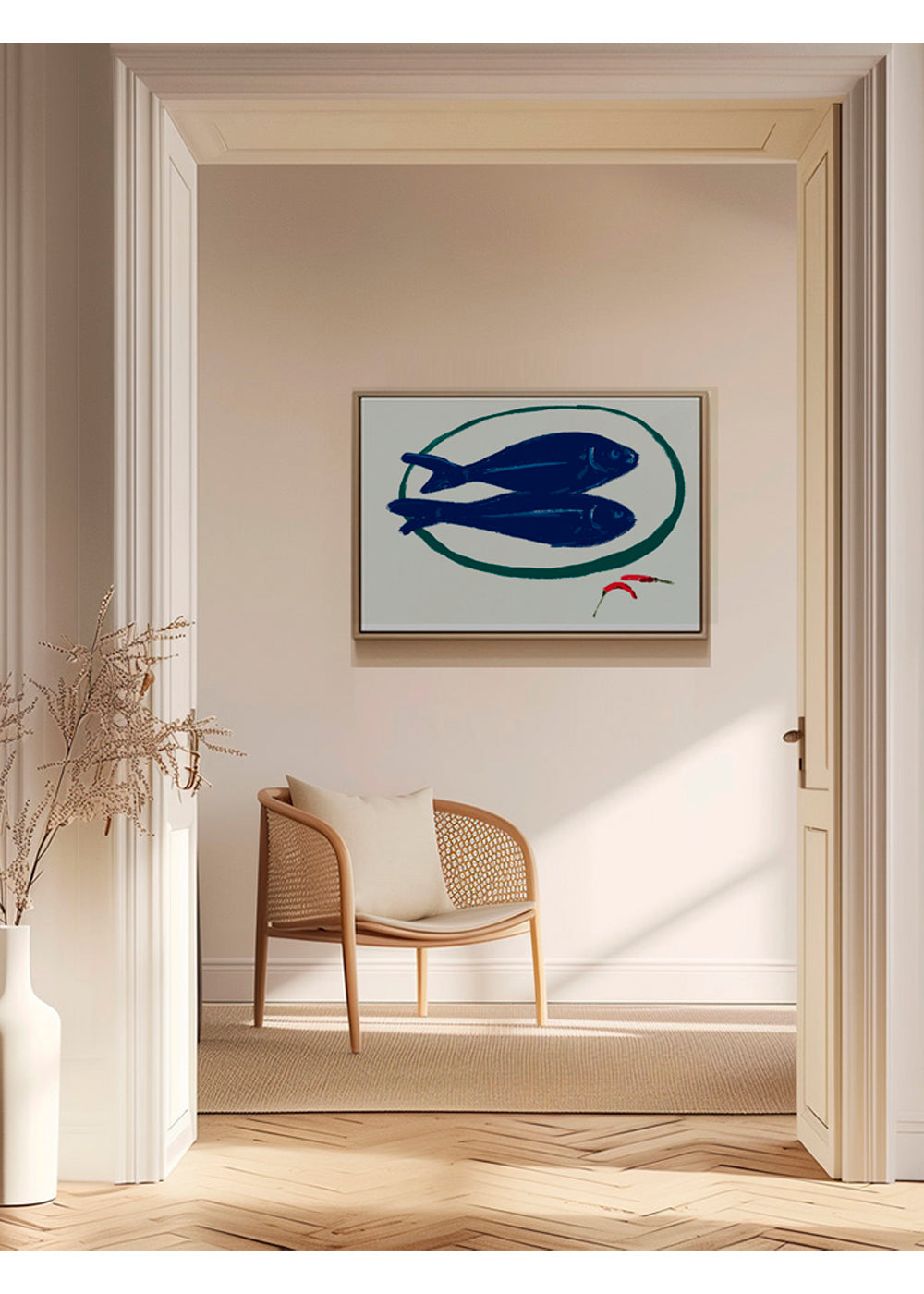 Tableau pour cuisine Blue fishes still life - Little Dean