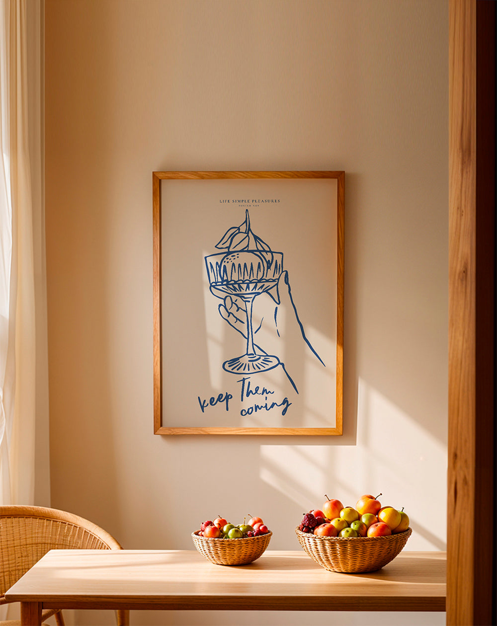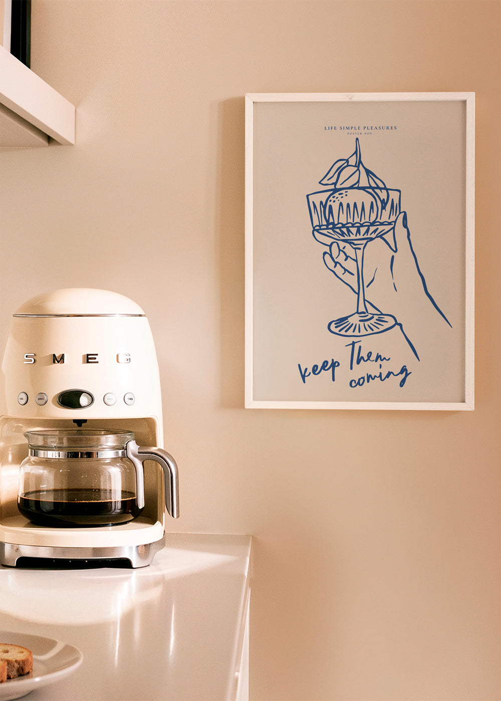 Jolie oeuvre de notre répertoire affiches de nourriture et boisson, faite par Seven Wall Art, avec des nuances de tons bleus, et avec orientation portrait. Cuisiner ne sera plus un problème grâce à cette plaque dans votre cuisine. Vous adorerez passer du temps dans votre cuisine. Combinez-la avec d'autres affiches de cuisine . Des murs élégants pour des maisons chics.