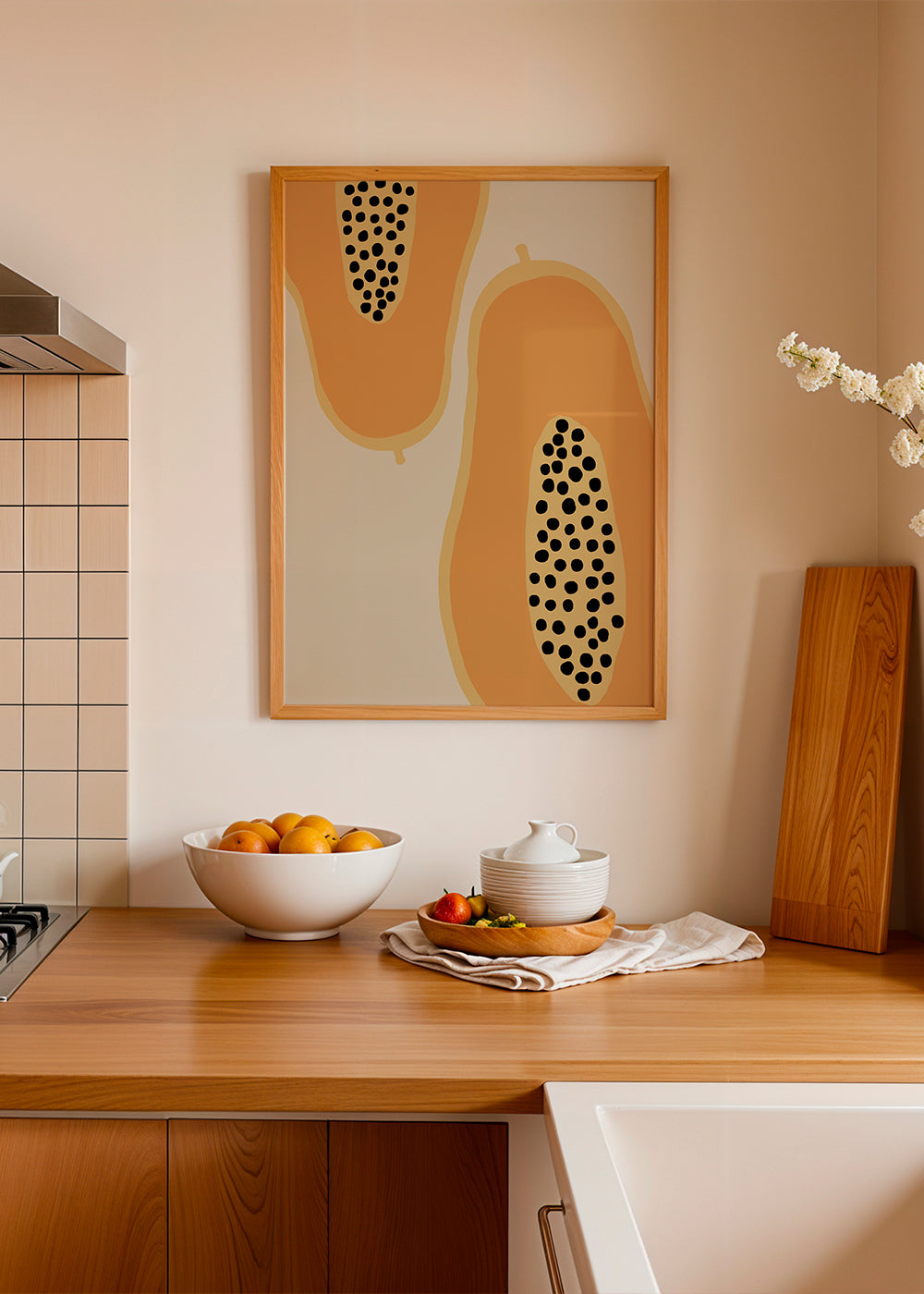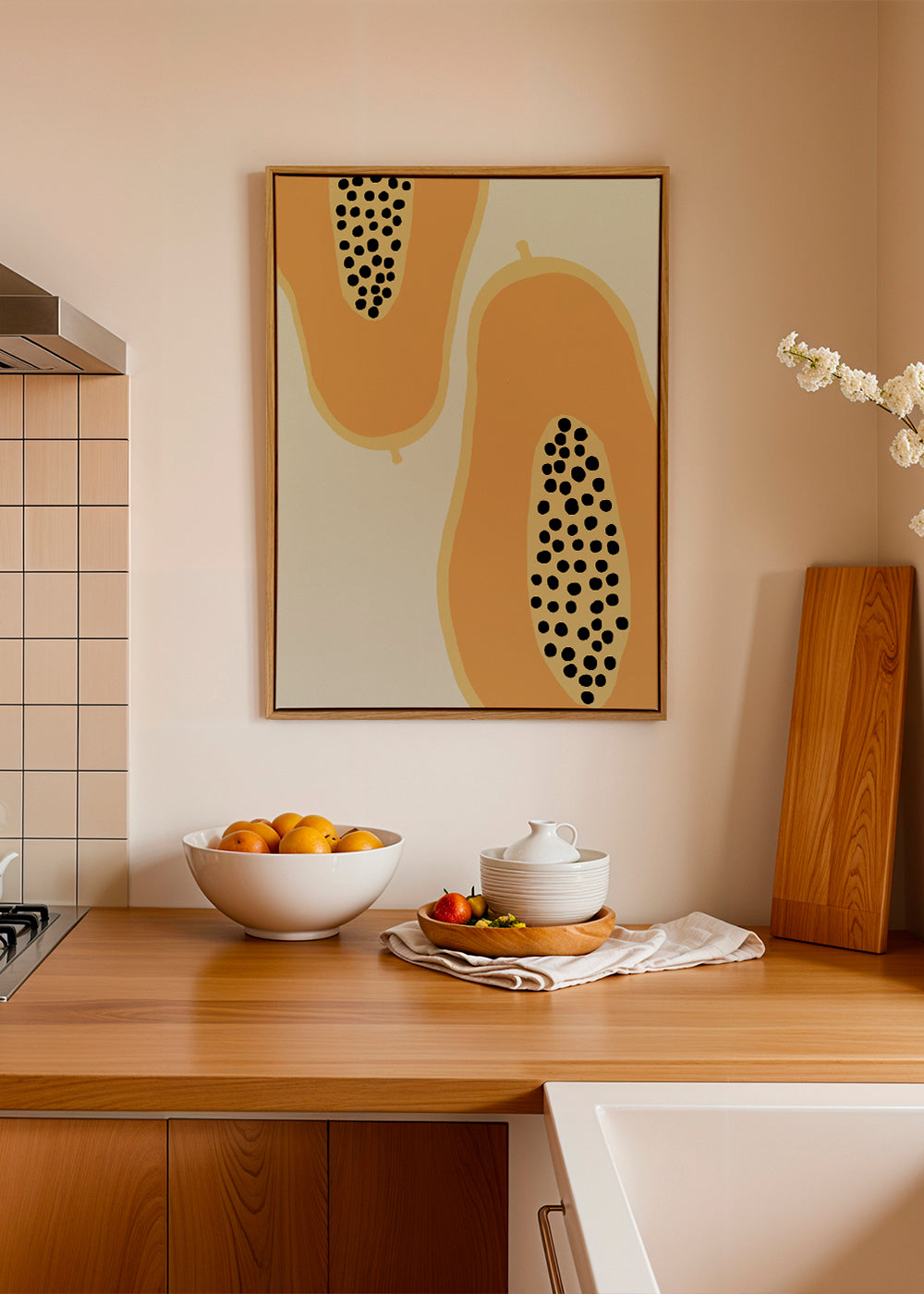 Un tableau de notre catégorie affiches fruits, avec des nuances orangés, et avec orientation portrait. La cuisine peut également être un espace accueillant, en combinant ce modèle avec d'autres tableaux de cuisine et en créant une cuisine super chic. Un mur vide est une toile qui doit être peinte.