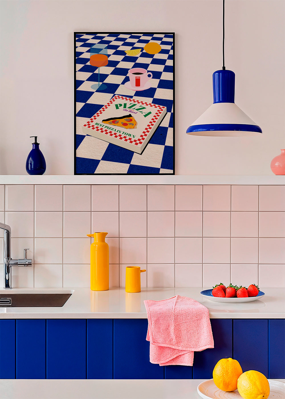 Beau poster de notre catégorie affiches pizza, de l'artiste 1x, dans des tons bleus, et en position portrait. La cuisine peut aussi être un endroit amusant, laissez nos affiches de cuisine éveiller votre côté culinaire. Des murs pleins de créativité.