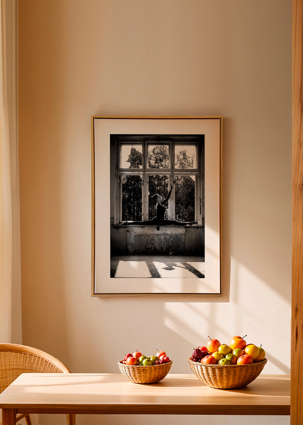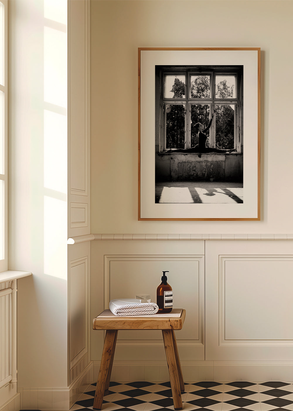 Beau tableau de notre catégorie affiches dance, dans des tons monochromes, et dans une orientation portrait. La photographie est un art qui transforme n’importe quelle décoration. L'ajout de tableaux photos à la décoration intérieure permet de moderniser n'importe quelle pièce. Décorez vos murs avec des tableaux. Ce modèle comprend une bordure blanche qui ajoute du contraste à l'œuvre.