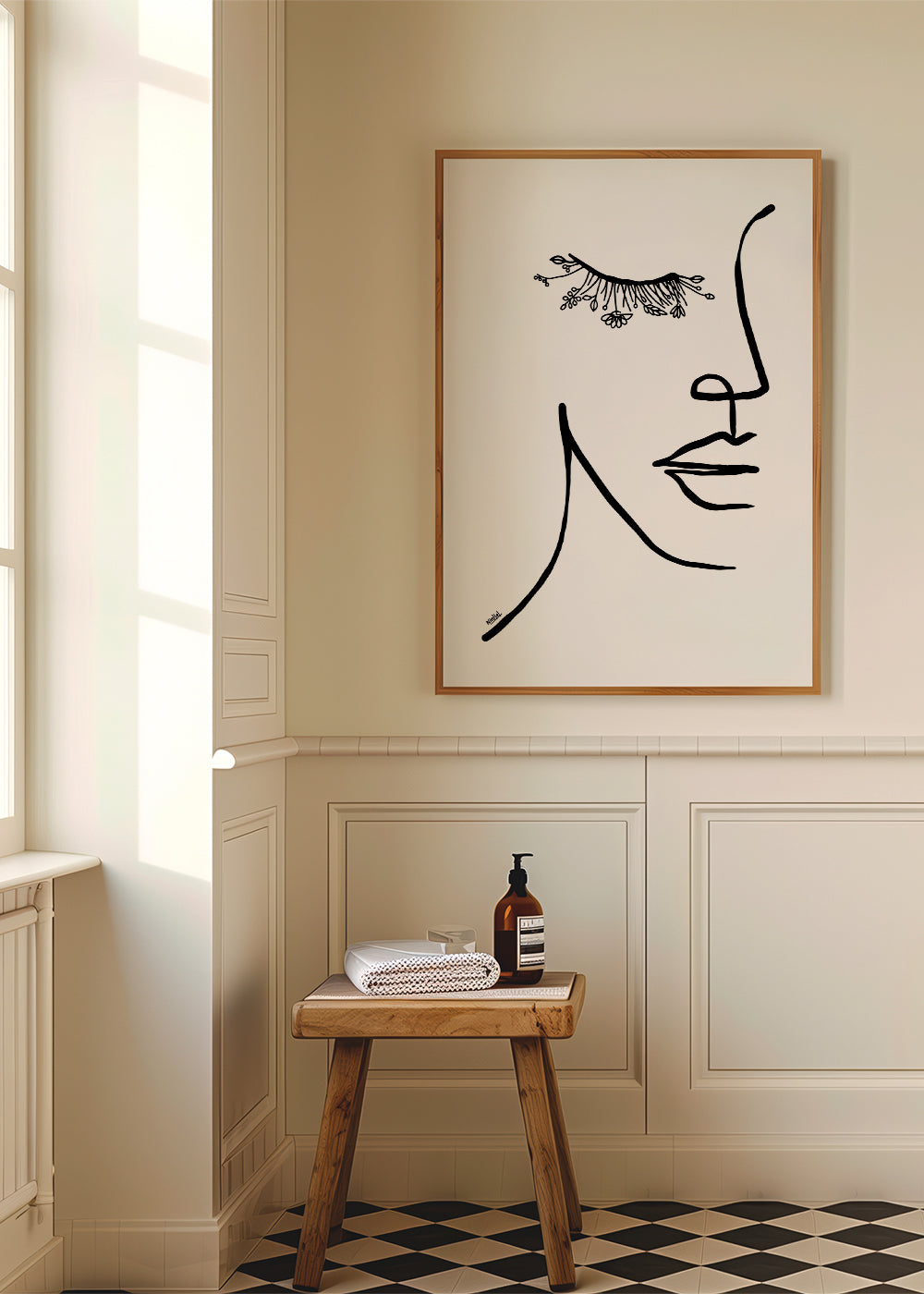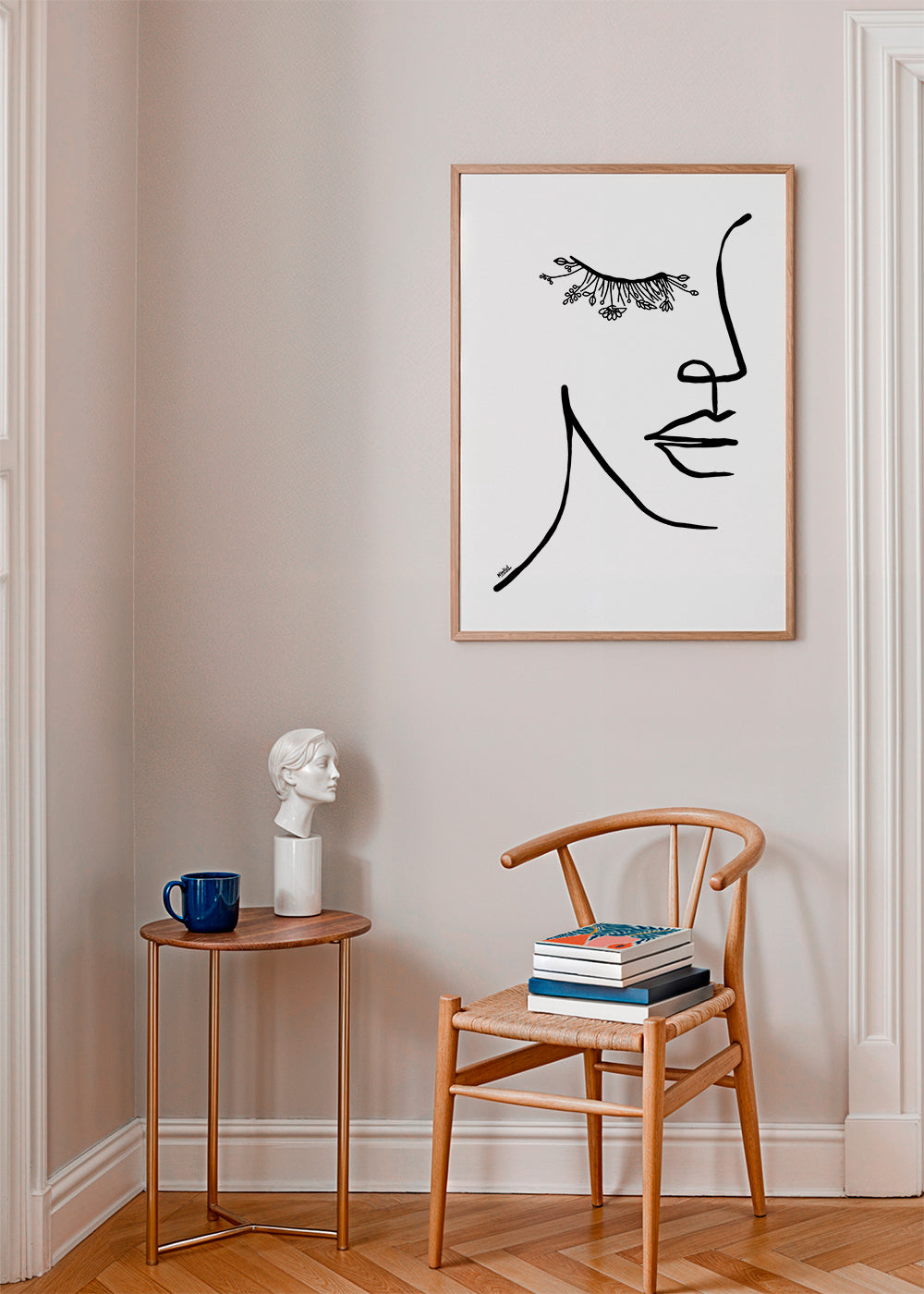 Un tableau appartenant à la catégorie affiches visage, créée par Ninhol, en couleurs monochromes, et en portrait. Une œuvre idéale pour les espaces qui respirent l'art et la créativité. Nos illustrations sont idéales pour décorer des espaces vides ou ennuyeux. Des murs élégants pour des maisons chics.