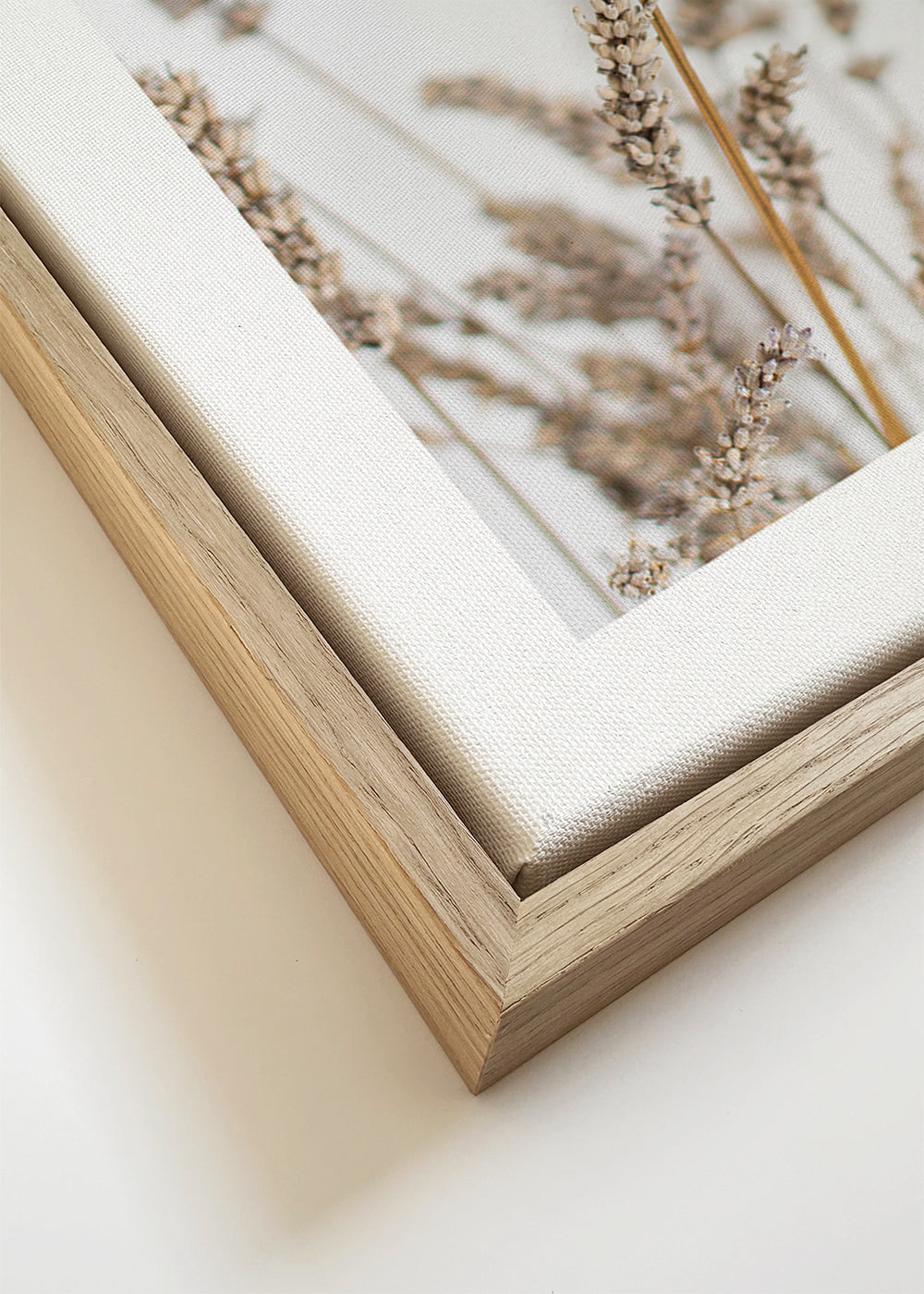 Les cadres en bois jusqu'à 50x70 (inclus) ont une largeur de 1,5 cm et une profondeur de 3 cm, tandis que dans les plus grands, la largeur est de 2 cm et une profondeur de 3 cm.
