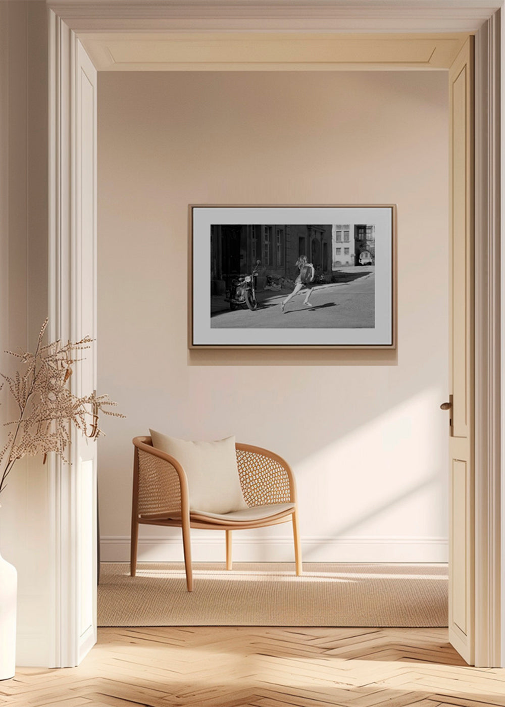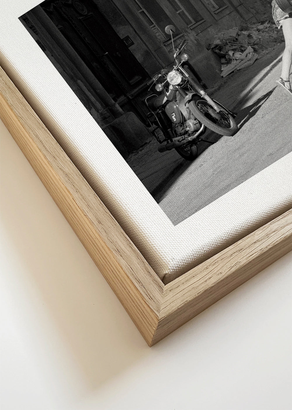 Si vous sélectionnez l'option passe-partout, nous ajouterons le tableau blanc mat au cadre, et nous réduirons le dessin de l'œuvre. Par exemple, si vous sélectionnez un tirage au format 50x70 cm, avec un cadre et un passe-partout couleur chêne, nous réduirons le dessin du tirage au format précédent (40x50cm). Ainsi, il s'adaptera parfaitement à la fenêtre intérieure du passe-partout.