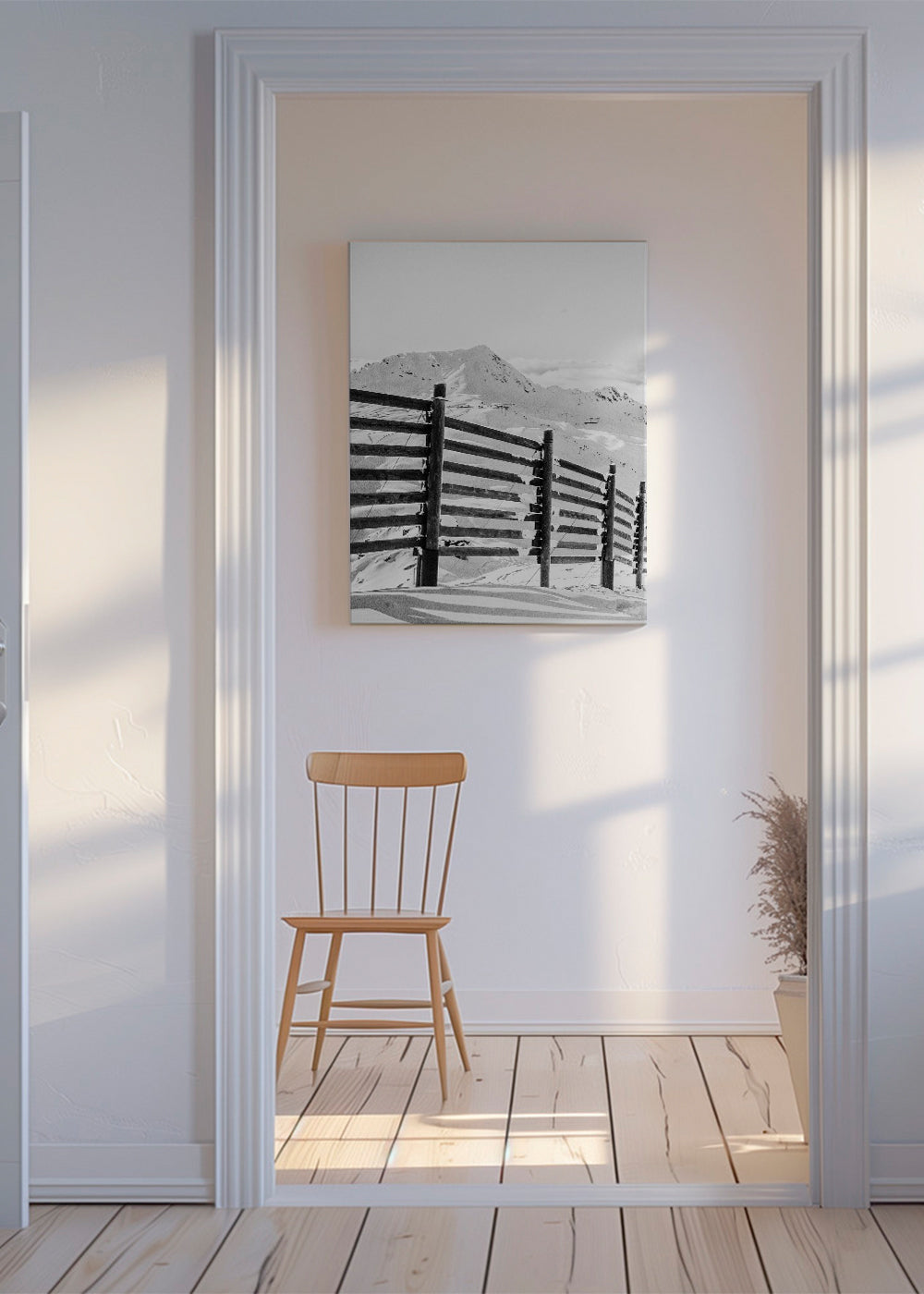 Beau modèle de la série tableaux neige et paysages enneigés, original de Victoria Frost, en couleurs noirs, et dans une orientation vers un portrait. Un jolie paysage idéal à combiner avec d'autres tableaux de la nature . Un merveilleux modèle qui s'harmonise avec votre décoration intérieure.