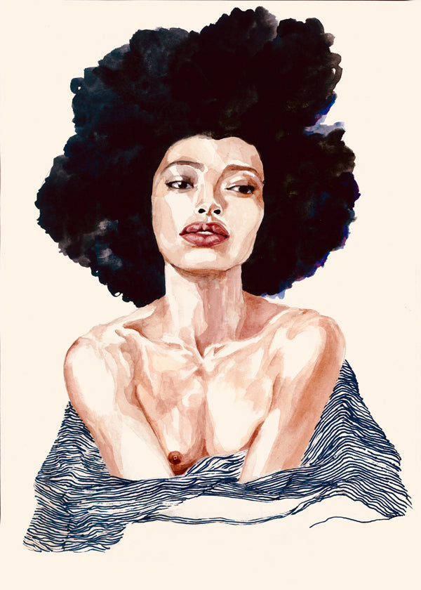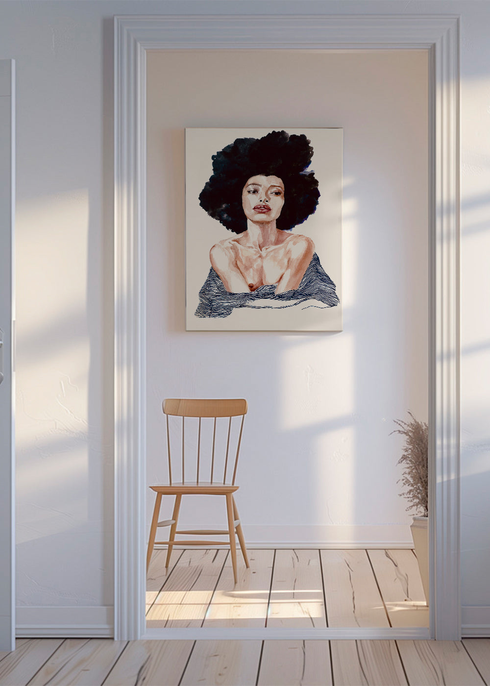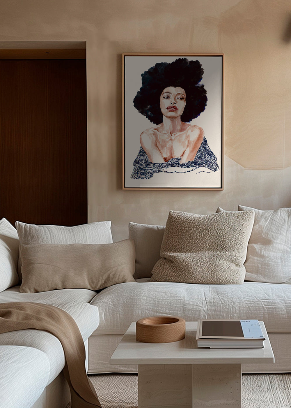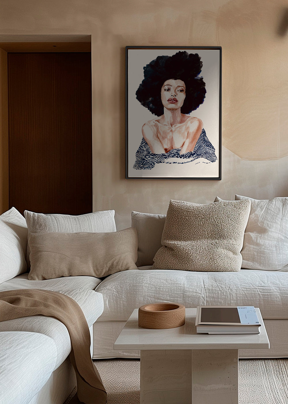 Beau poster de la collection posters femme, de Sophia Novosel, avec pigments noirs, et en portrait. C'est une illustration de style simple et propre, combinez-la avec d'autres illustrations pour obtenir une composition artistique. Art pur et design.