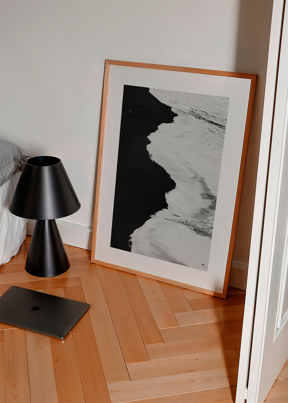 Si vous sélectionnez l'option passe-partout, nous ajouterons le tableau blanc mat au cadre, et nous réduirons le dessin de l'œuvre. Par exemple, si vous sélectionnez un tirage au format 50x70 cm, avec un cadre et un passe-partout couleur chêne, nous réduirons le dessin du tirage au format précédent (40x50cm). Ainsi, il s'adaptera parfaitement à la fenêtre intérieure du passe-partout.