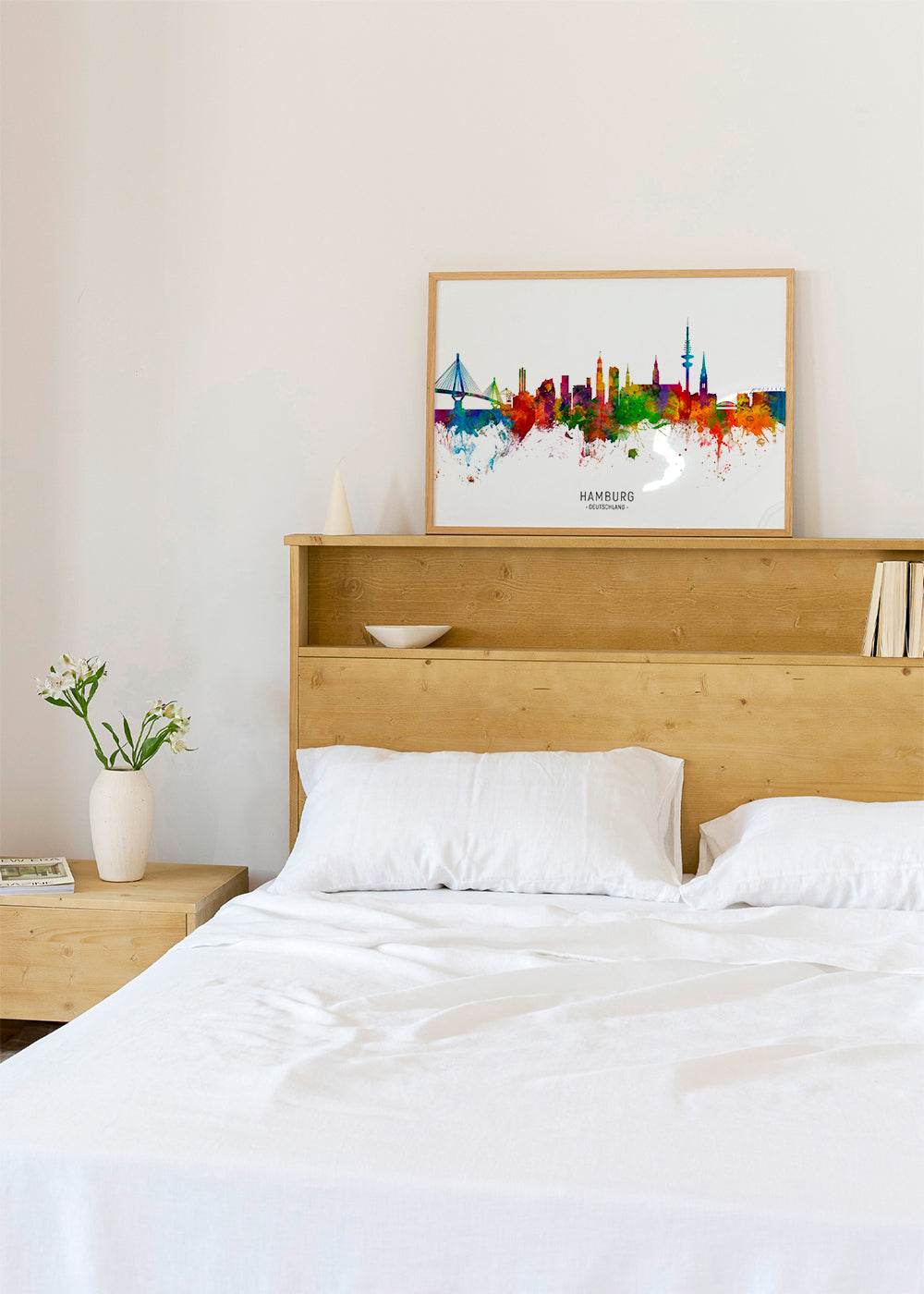 Sur notre site Web, vous pouvez trouver les tailles suivantes : 20x30cm, 30x40cm, 40x50cm, 50x50cm, 50x70cm, 60x90cm et 70x100cm. Ces tailles se réfèrent aux dimensions des affiches. Si vous combinez nos impressions avec nos cadres, la taille et le poids final seront les suivants :