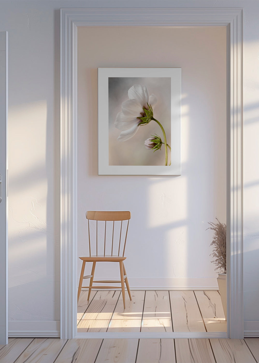 Une oeuvre de la collection tableaux de fleurs et botanique, avec des nuances de couleurs verts, et en portrait. Ce tableau botanique est parfait pour une décoration pleine de nature. Remplissez vos murs d'art. Ce modèle comprend une bordure blanche qui ajoute du contraste à l'œuvre.