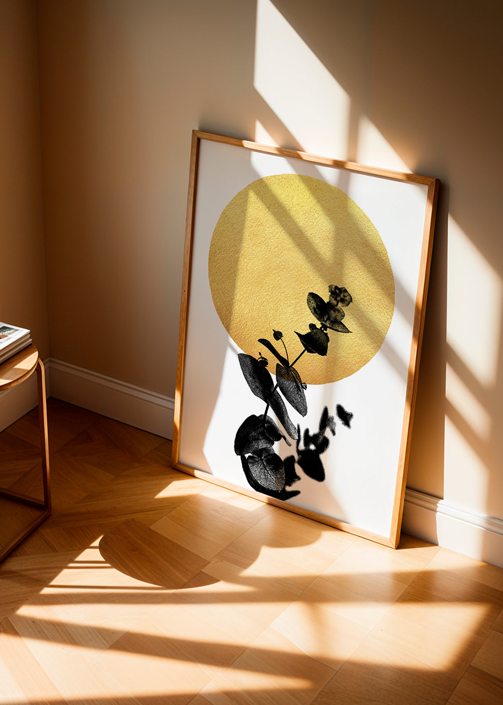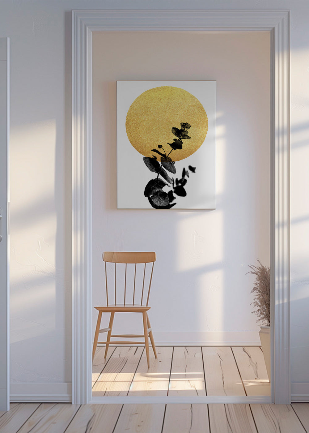 Tableau d'une illustration abstraite d'un soleil et une plante