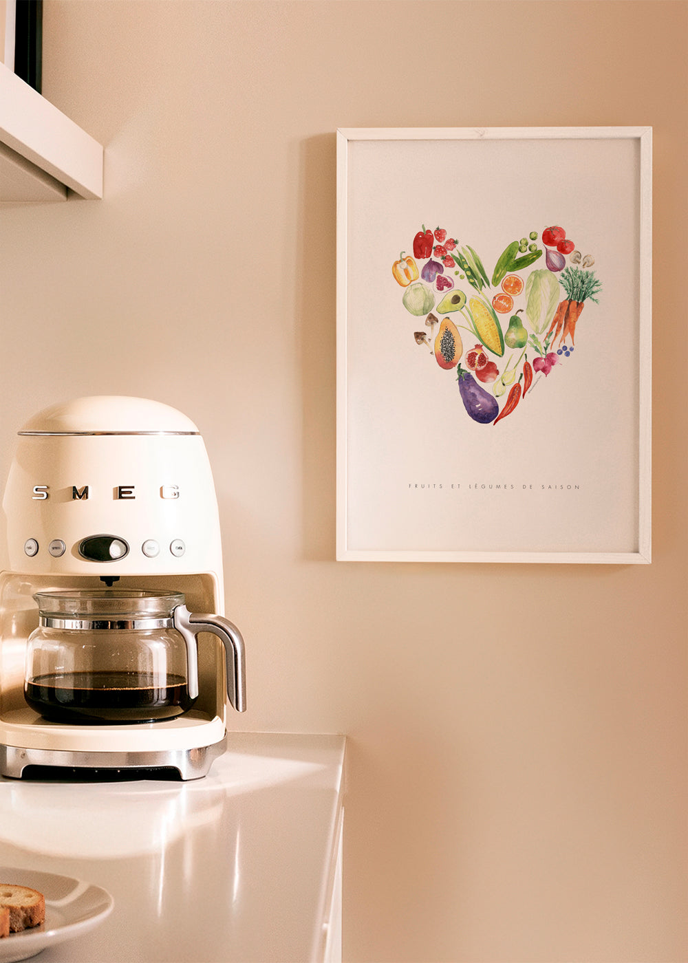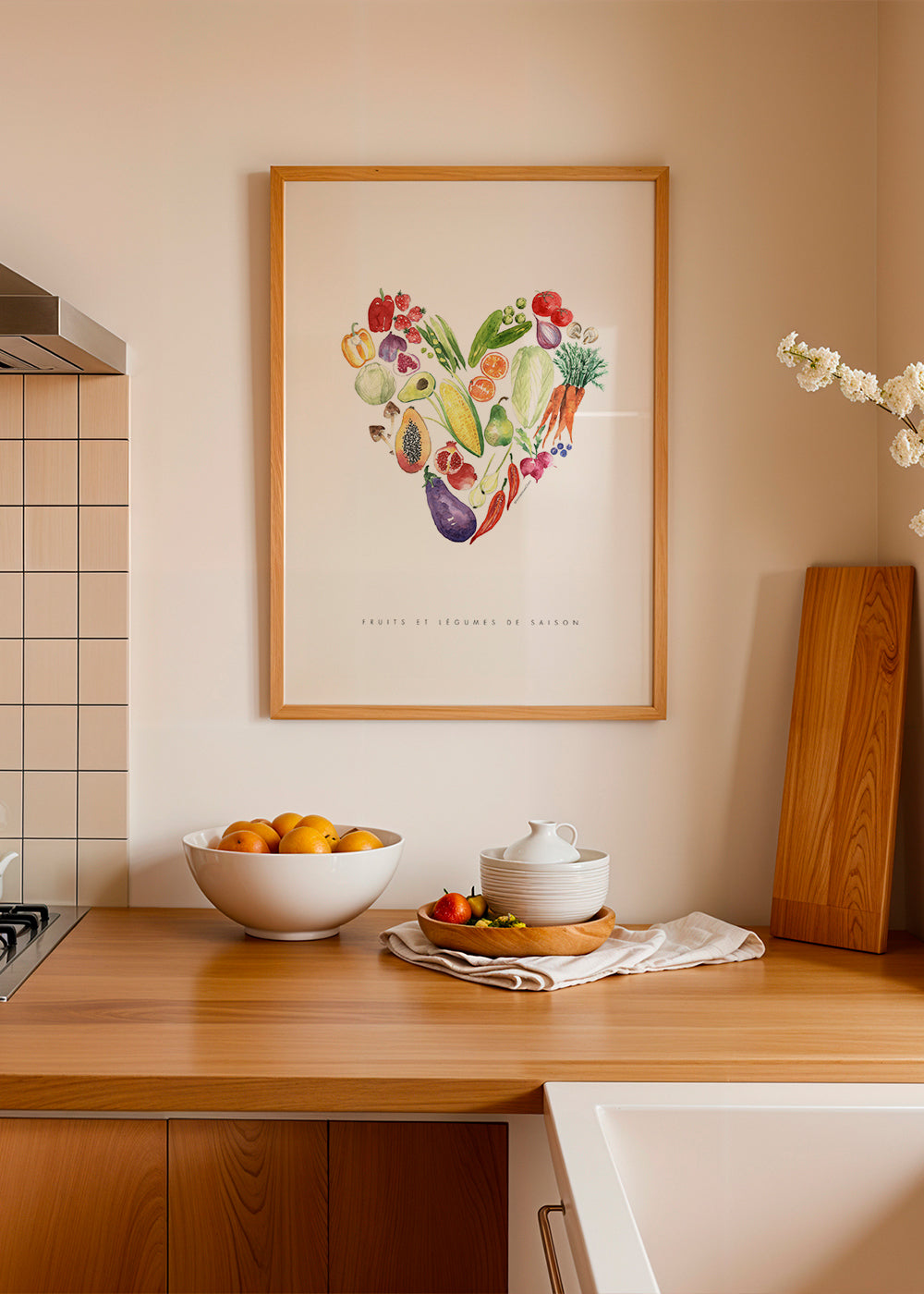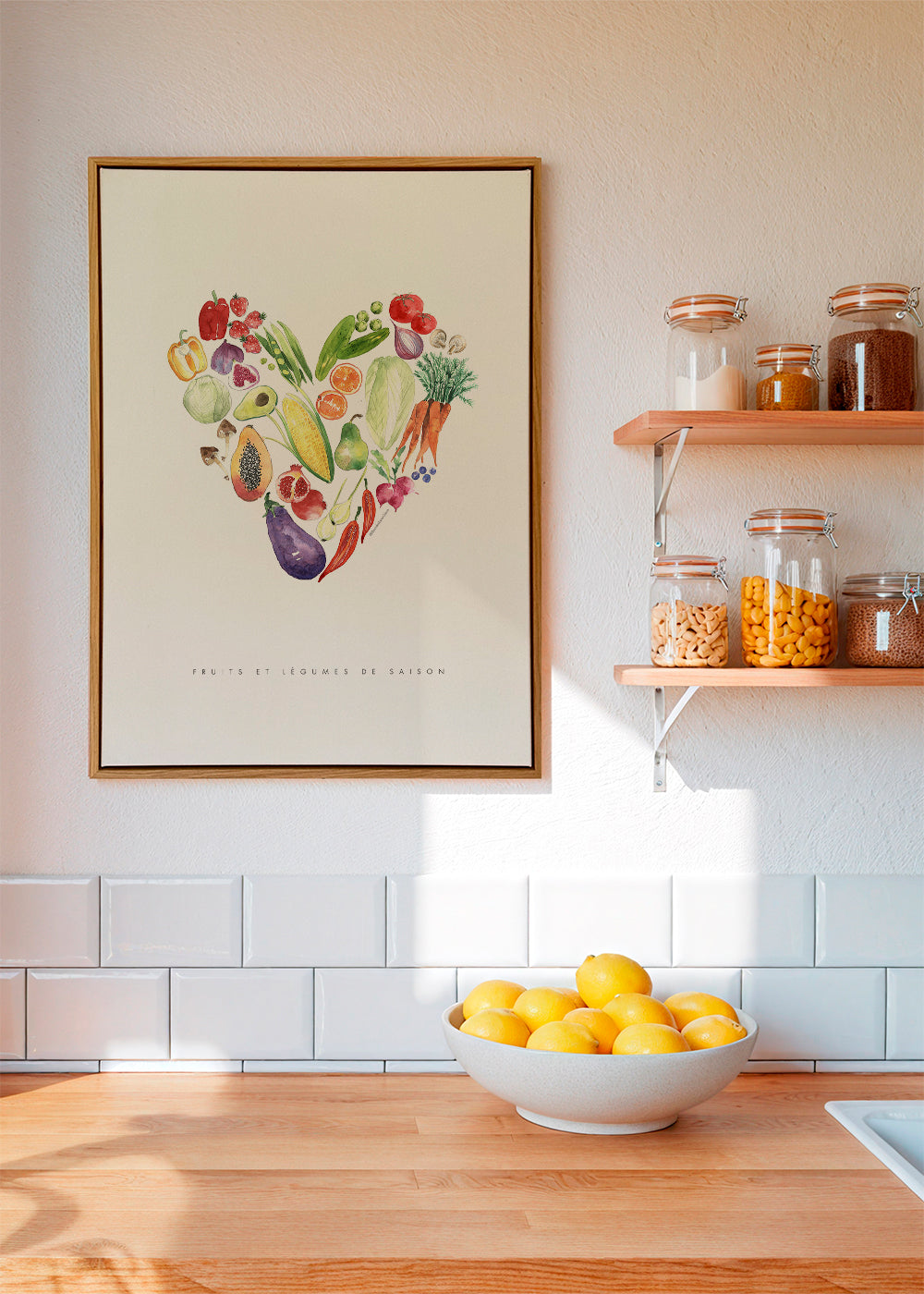 Ce affiche du style de nos affiches cœur, créée par Mercedes Lopez Charro, avec les couleurs multicolores, et pour mettre en orientation portrait. Transformez votre cuisine en un espace ludique avec ce tableau et d'autres tableaux de cuisine . Un mur vide est une toile qui doit être peinte.