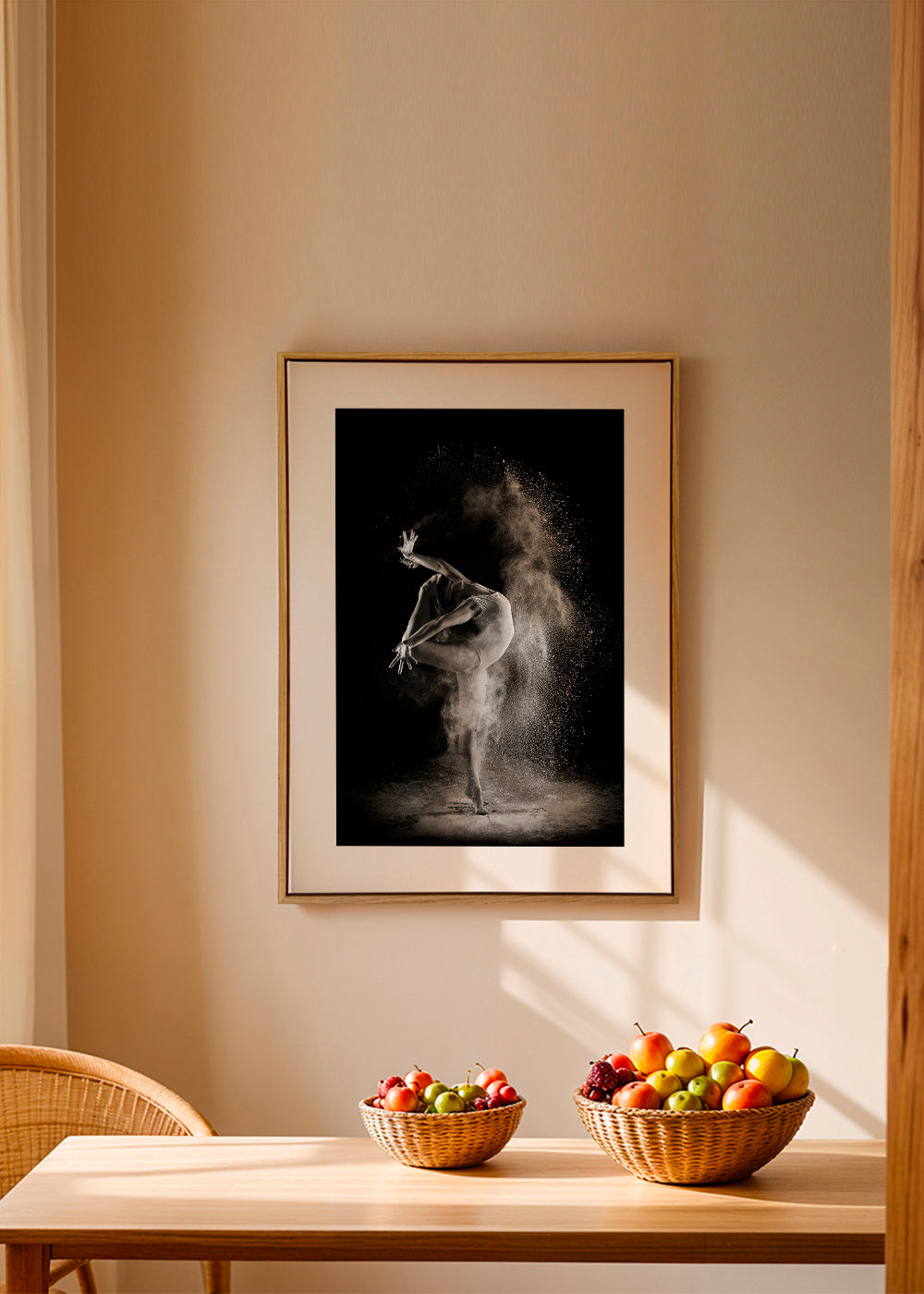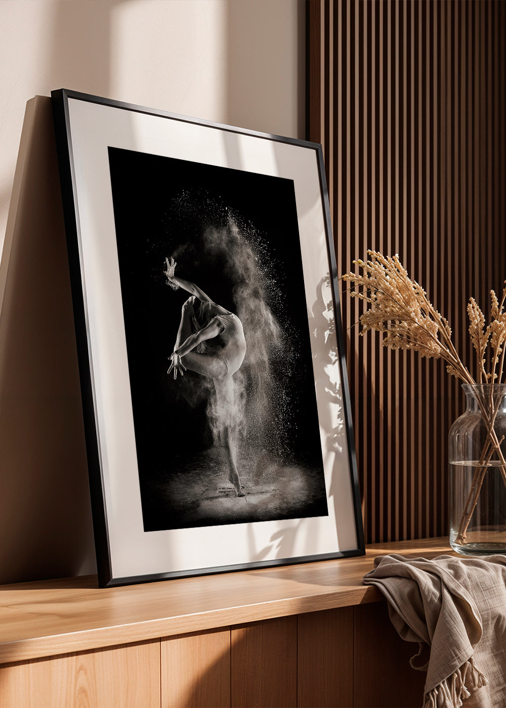 Ce affiche avec l'inspiration dans la collection affiches dance, avec des tonalités monochromes, et pour mettre en position portrait. Une image parfaite pour donner une touche originale à vos murs ainsi que d'autres photographies à encadrer . Changez l'aspect d'une pièce en ajoutant simplement des tableaux aux murs. Cette œuvre comprend une bordure blanche qui encadre le modèle pour en rehausser le style.
