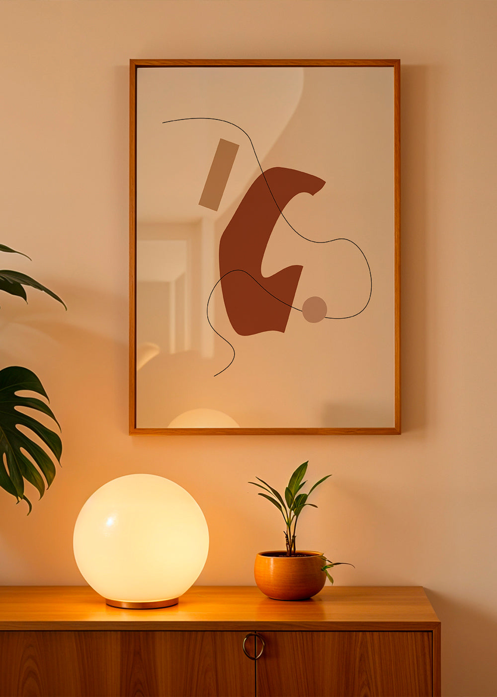 Beau tableau de notre catégorie tableaux géométrique, conçue par Studio Krone Kern, avec des touches bruns, et dans une orientation portrait. Cette œuvre aux formes abstraites est idéale à combiner avec les tableaux géométriques et l'art abstrait. La touche ultime pour la décoration de votre maison.