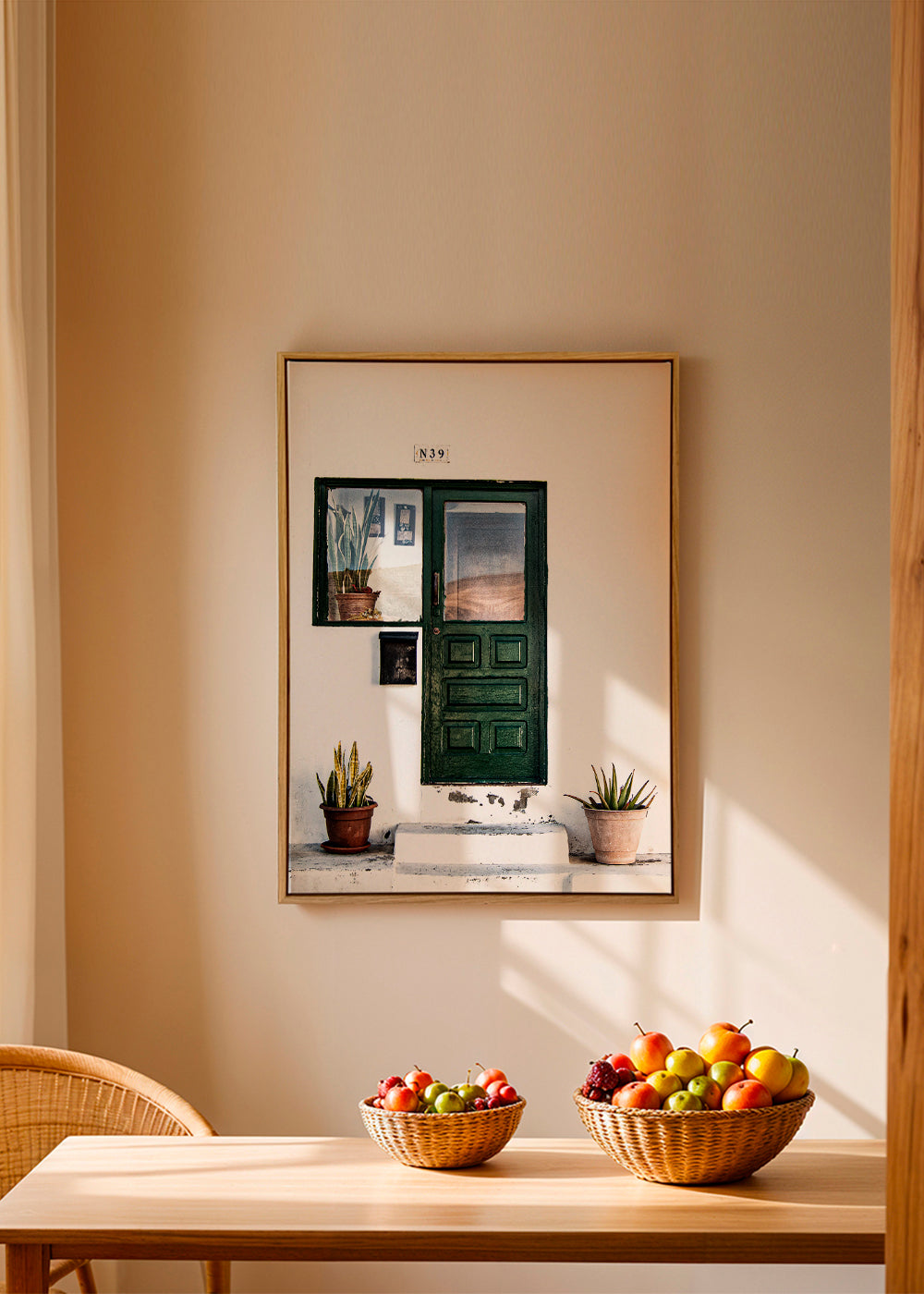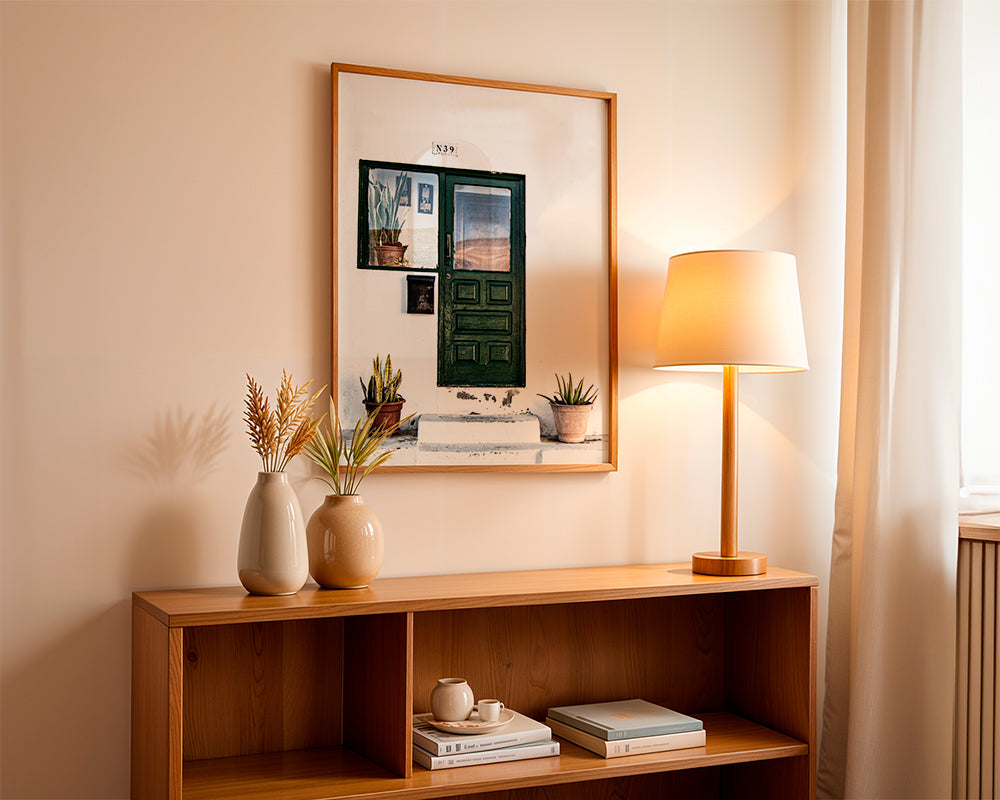 Si vous sélectionnez l'option passe-partout, nous ajouterons le tableau blanc mat au cadre, et nous réduirons le dessin de l'œuvre. Par exemple, si vous sélectionnez un tirage au format 50x70 cm, avec un cadre et un passe-partout couleur chêne, nous réduirons le dessin du tirage au format précédent (40x50cm). Ainsi, il s'adaptera parfaitement à la fenêtre intérieure du passe-partout.