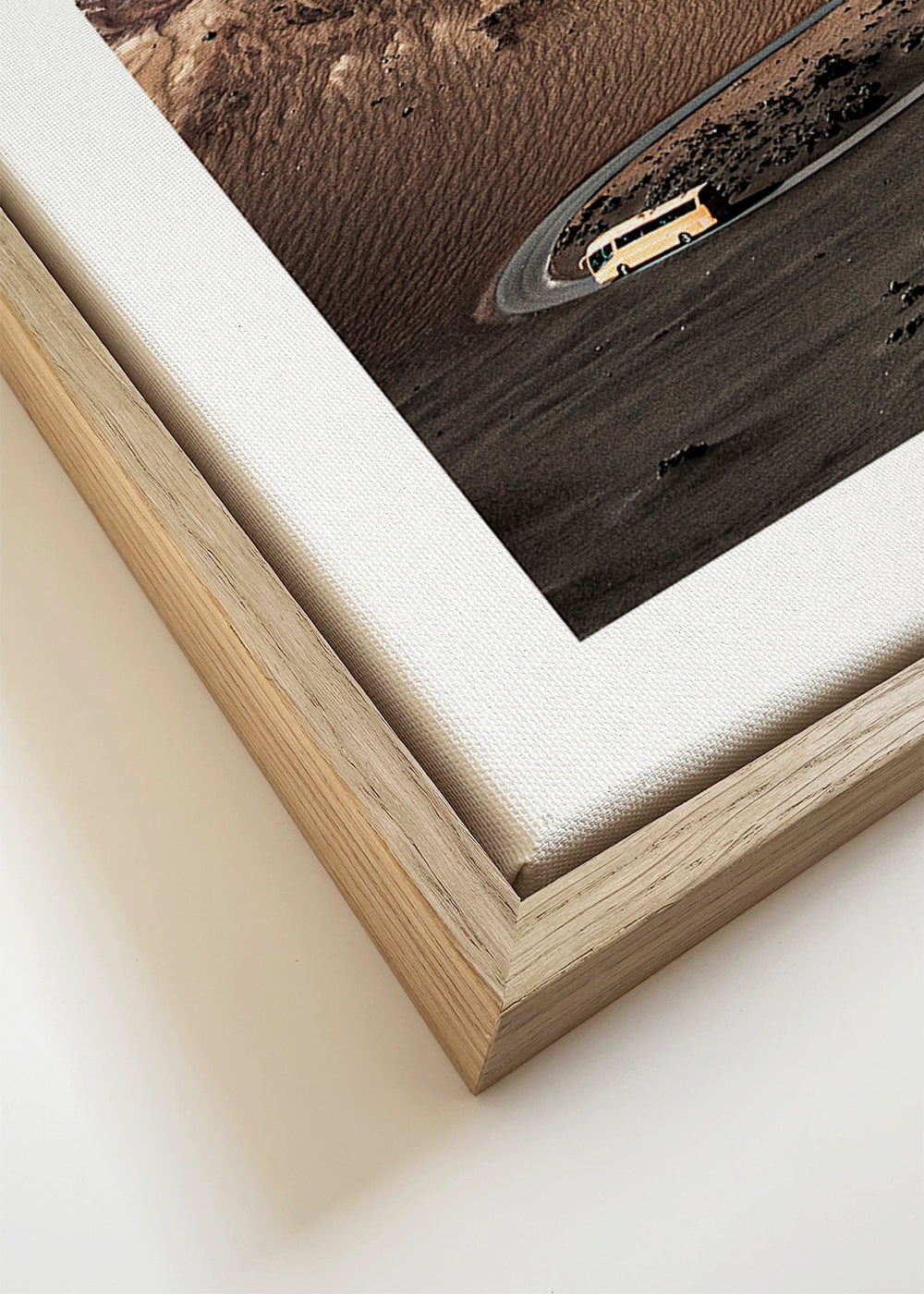 Si vous sélectionnez l'option passe-partout, nous ajouterons le tableau blanc mat au cadre, et nous réduirons le dessin de l'œuvre. Par exemple, si vous sélectionnez un tirage au format 50x70 cm, avec un cadre et un passe-partout couleur chêne, nous réduirons le dessin du tirage au format précédent (40x50cm). Ainsi, il s'adaptera parfaitement à la fenêtre intérieure du passe-partout.