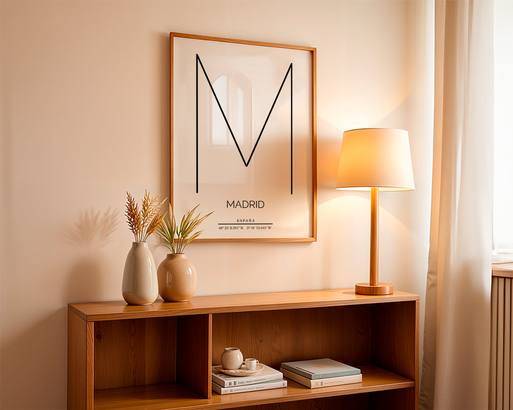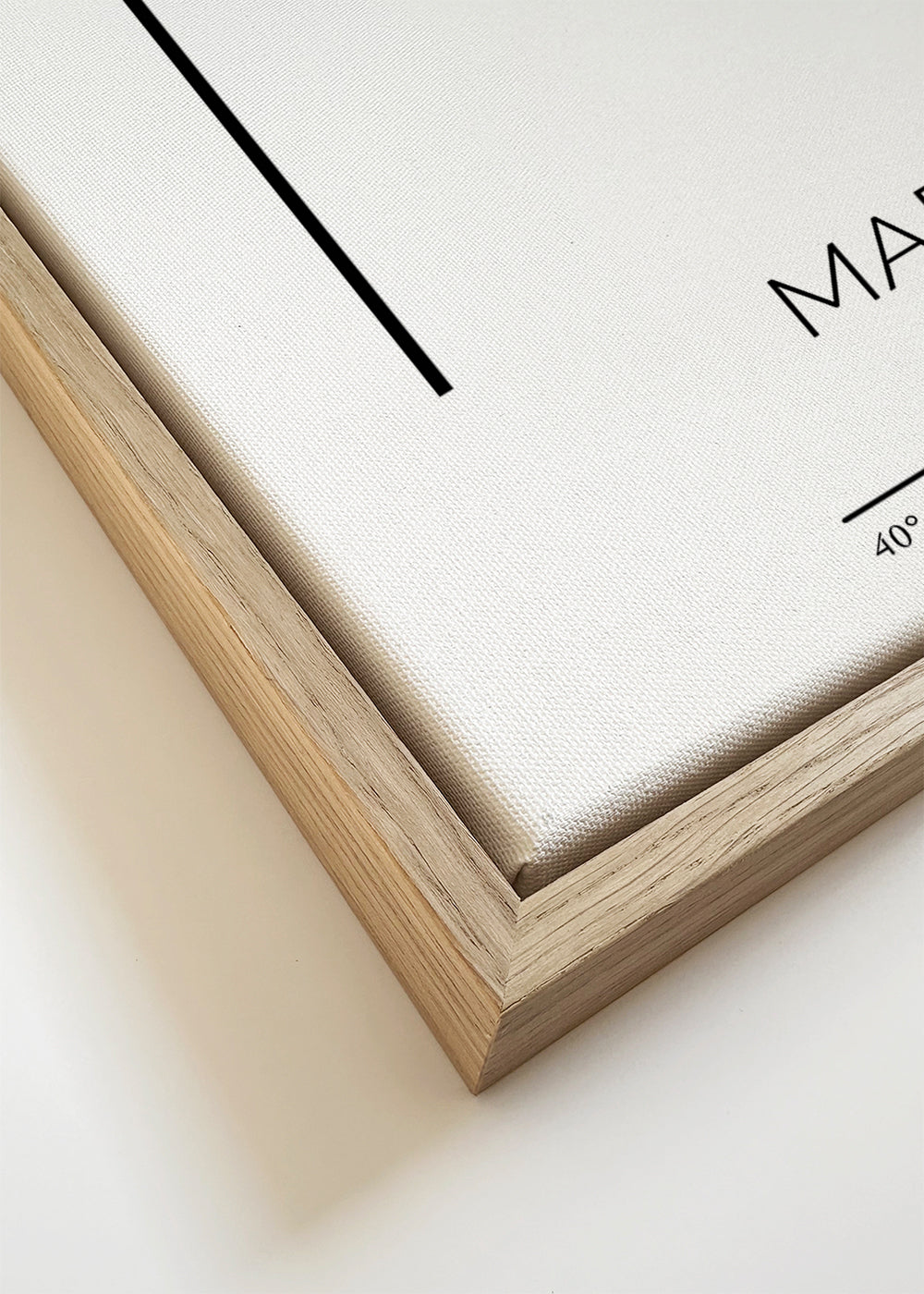Tous nos cadres sont fabriqués en Espagne. Les cadres blanc, noir et chêne sont en bois d'Ayous, et ceux en chêne sont plaqués en chêne, tandis que les métalliques sont en aluminium.