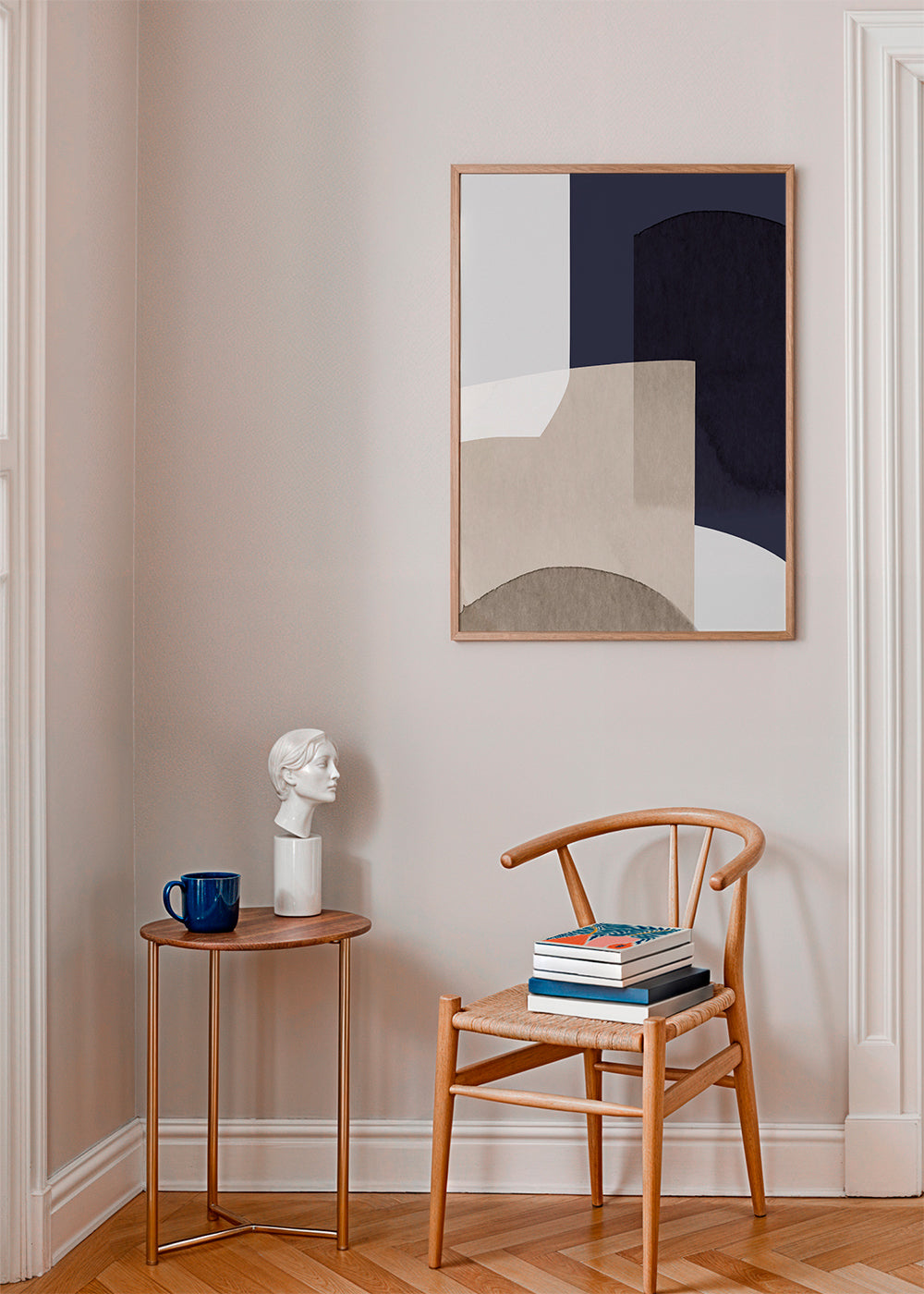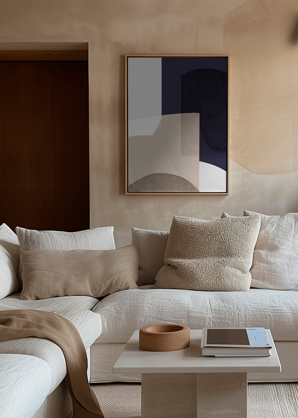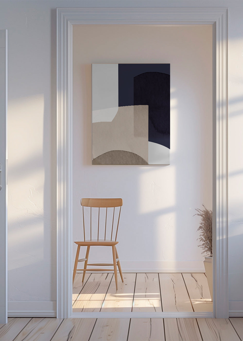 Un tableau de notre sélection tableaux géométrique, de l'artiste Anna Mainz, avec des tonalités bleus, et à mettre en portrait. Les formes géométriques et abstraites contribuent à créer une atmosphère légère et créative. Laissez-vous captiver par l'art.