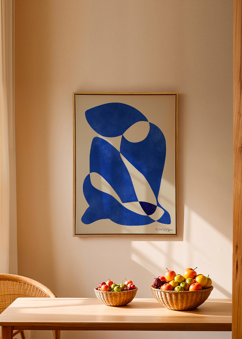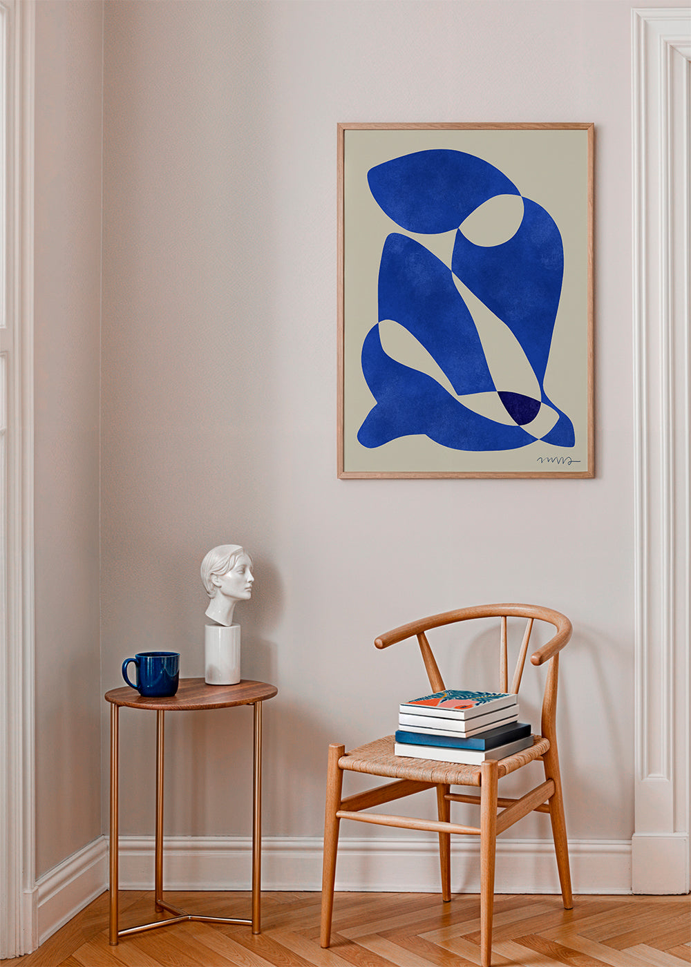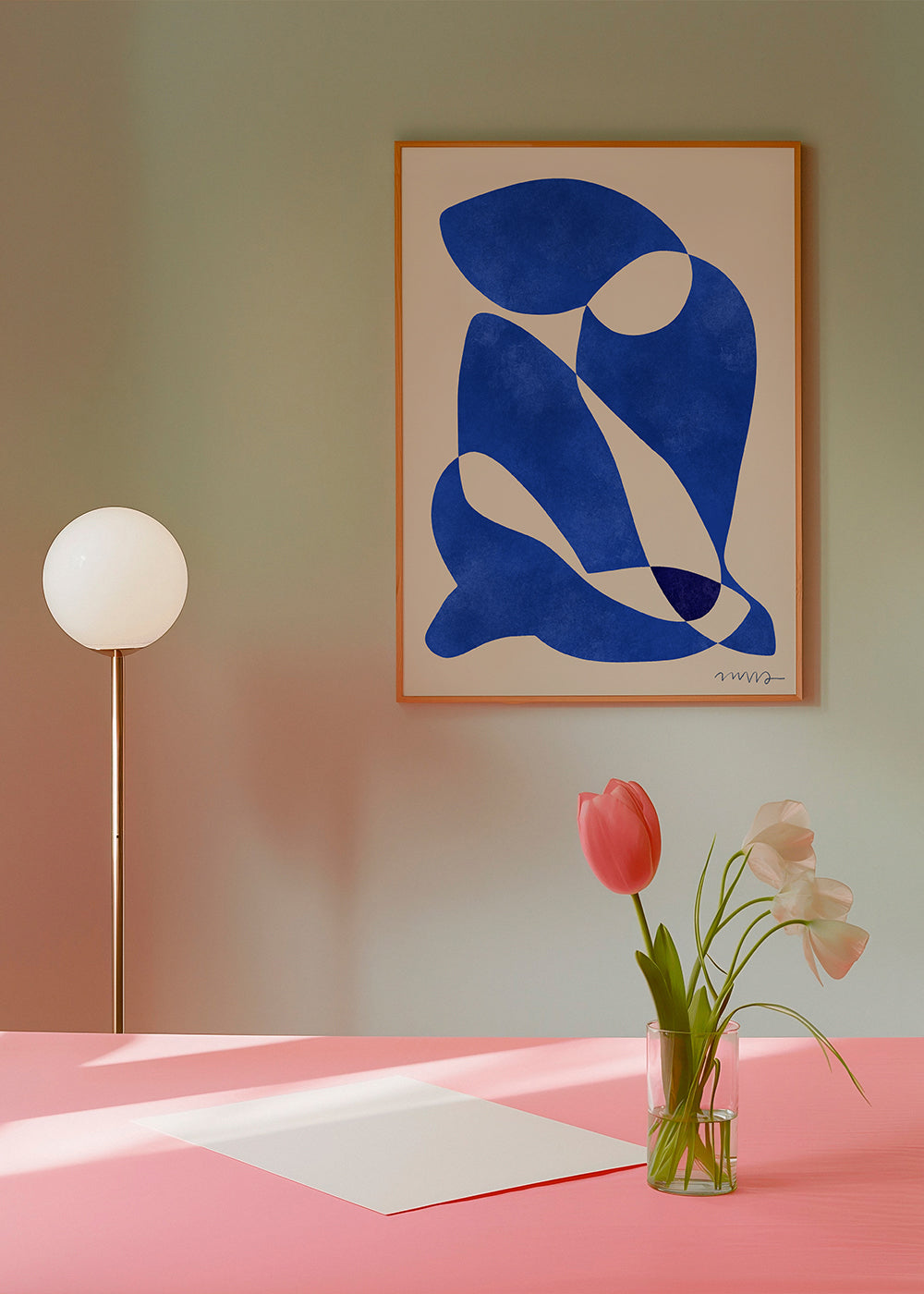 Beau tableau de notre collection posters et affiches d'illustrations, de Vaanzaal, avec des nuances de couleurs bleus, et pour mettre en orientation portrait. C'est une illustration de style simple et propre, combinez-la avec d'autres illustrations pour obtenir une composition artistique. Art pur et design.