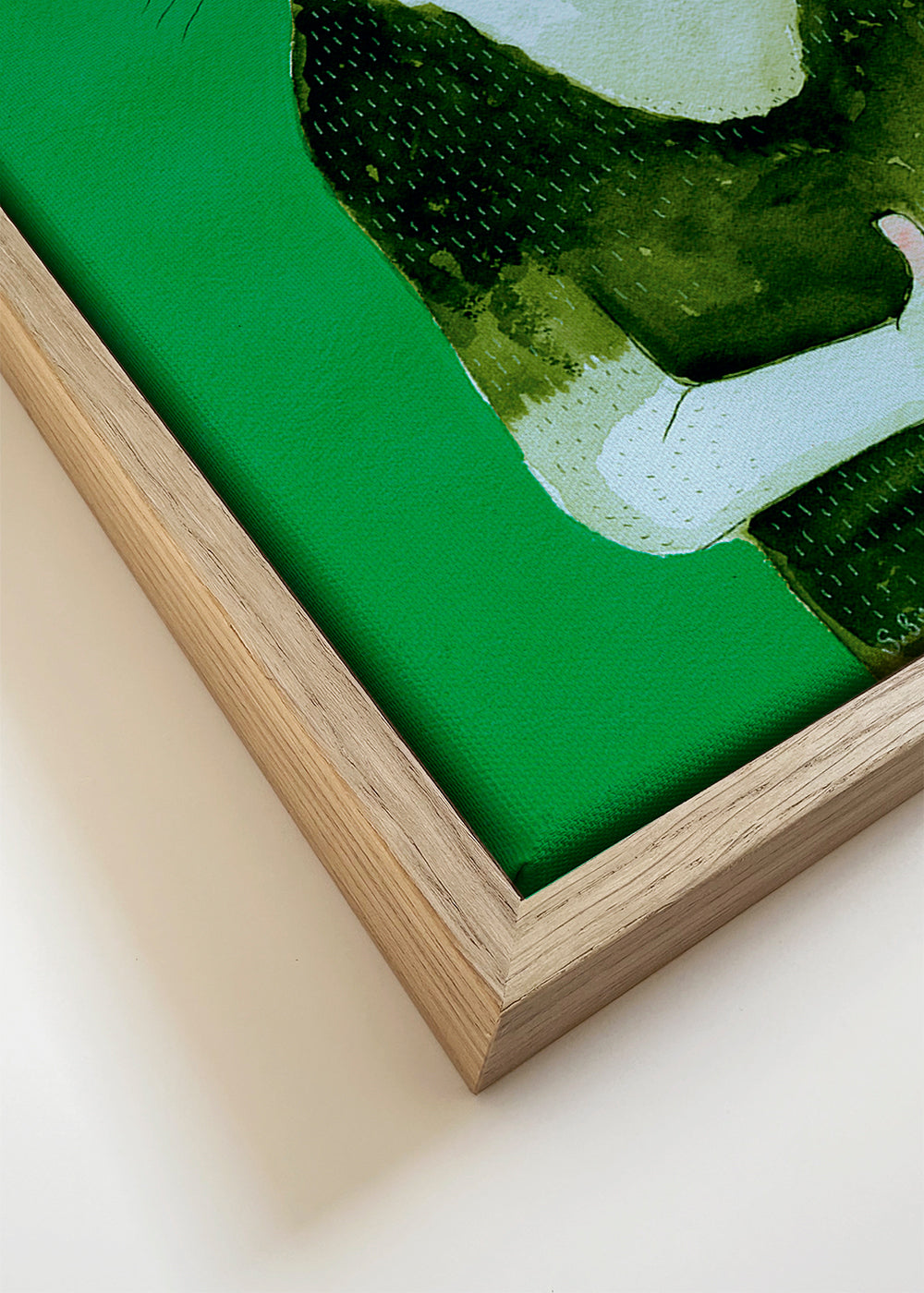 Beau tableau du style de nos tableaux de chat, appartenant à la collection de 1x, dans des tons verts, et à mettre en portrait. Les tableaux avec illustrations donnent une touche originale à la décoration de la maison. Une touche de modernité pour votre intérieur.