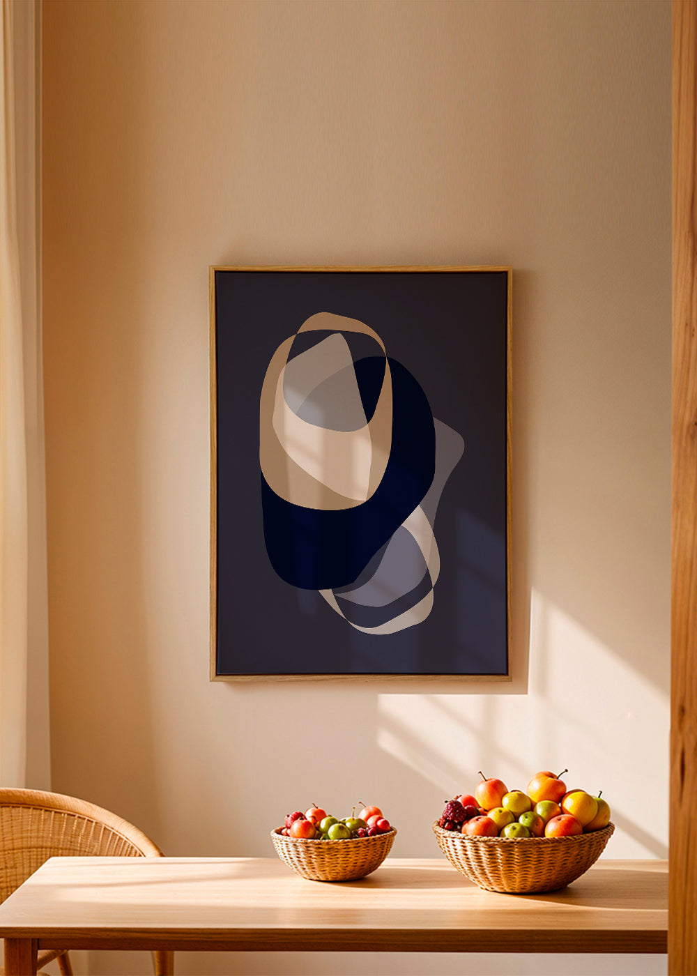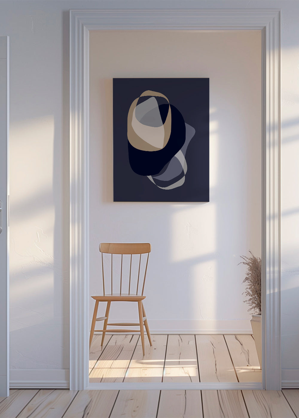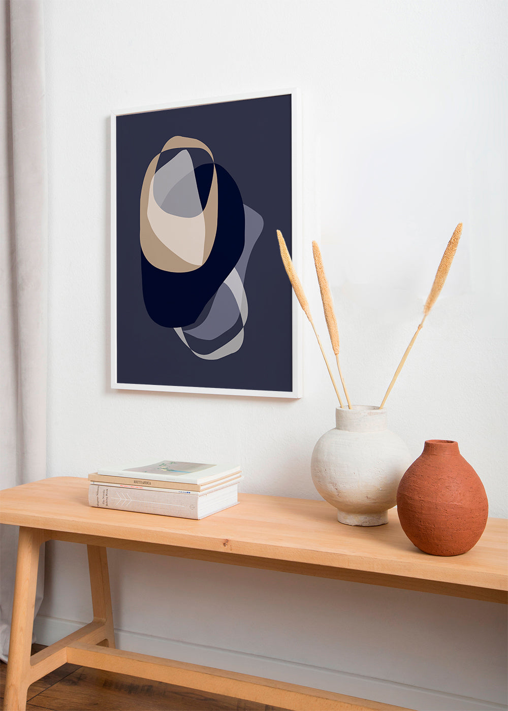 Une plaque de notre répertoire tableaux géométrique, de Anna Mainz, avec des nuances de tons bleus, et pour mettre en position portrait. Cette œuvre aux formes abstraites est idéale à combiner avec les tableaux géométriques et l'art abstrait. Un nouveau look sur vos murs peut donner un nouvel air à toute la décoration.