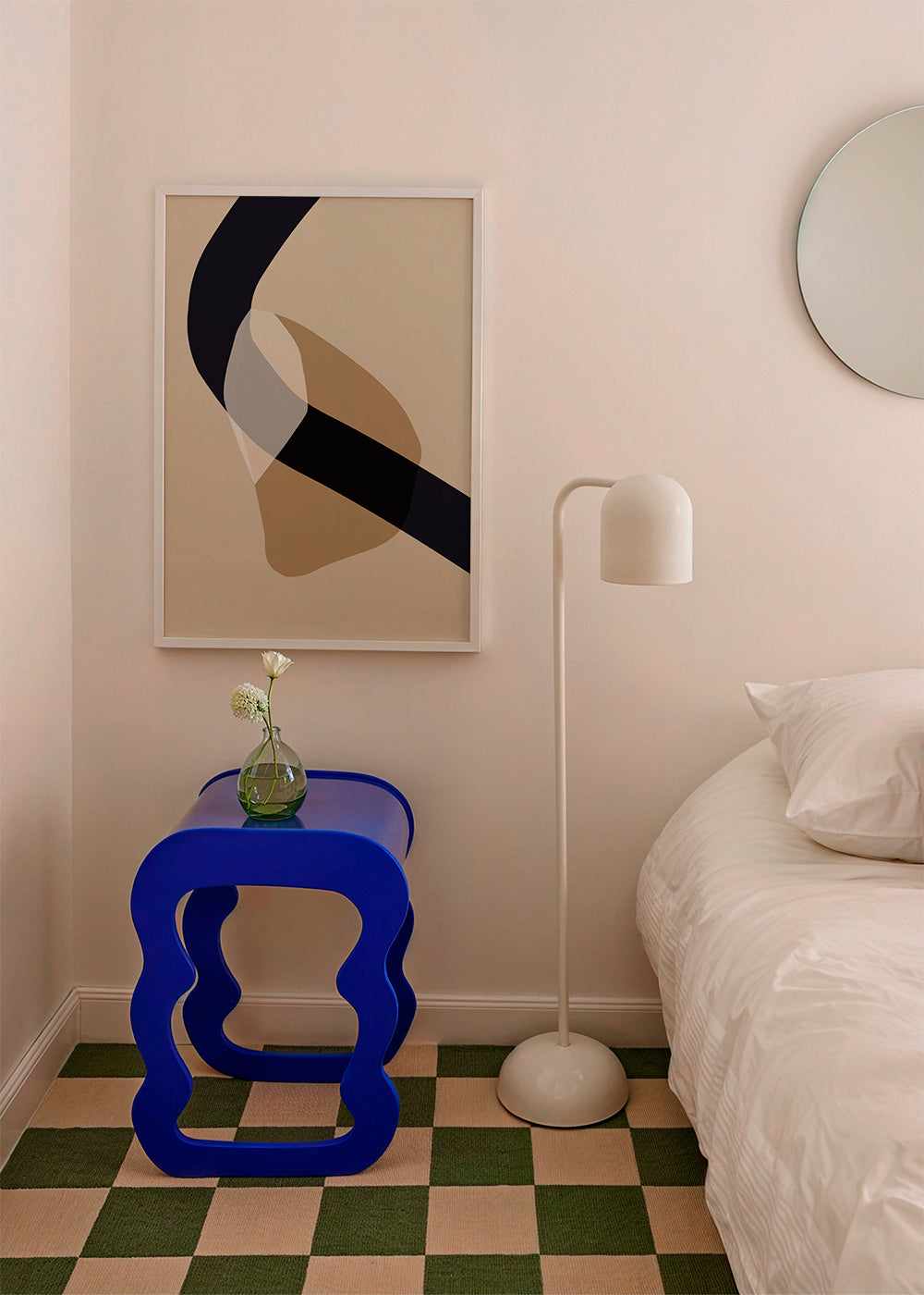 Une plaque appartenant à la catégorie tableaux géométrique, de la collection de l'artiste Anna Mainz, dans des tons bleus, et en position portrait. Cette œuvre aux formes abstraites est idéale à combiner avec les tableaux géométriques et l'art abstrait. Élégance inspirée par l'art.