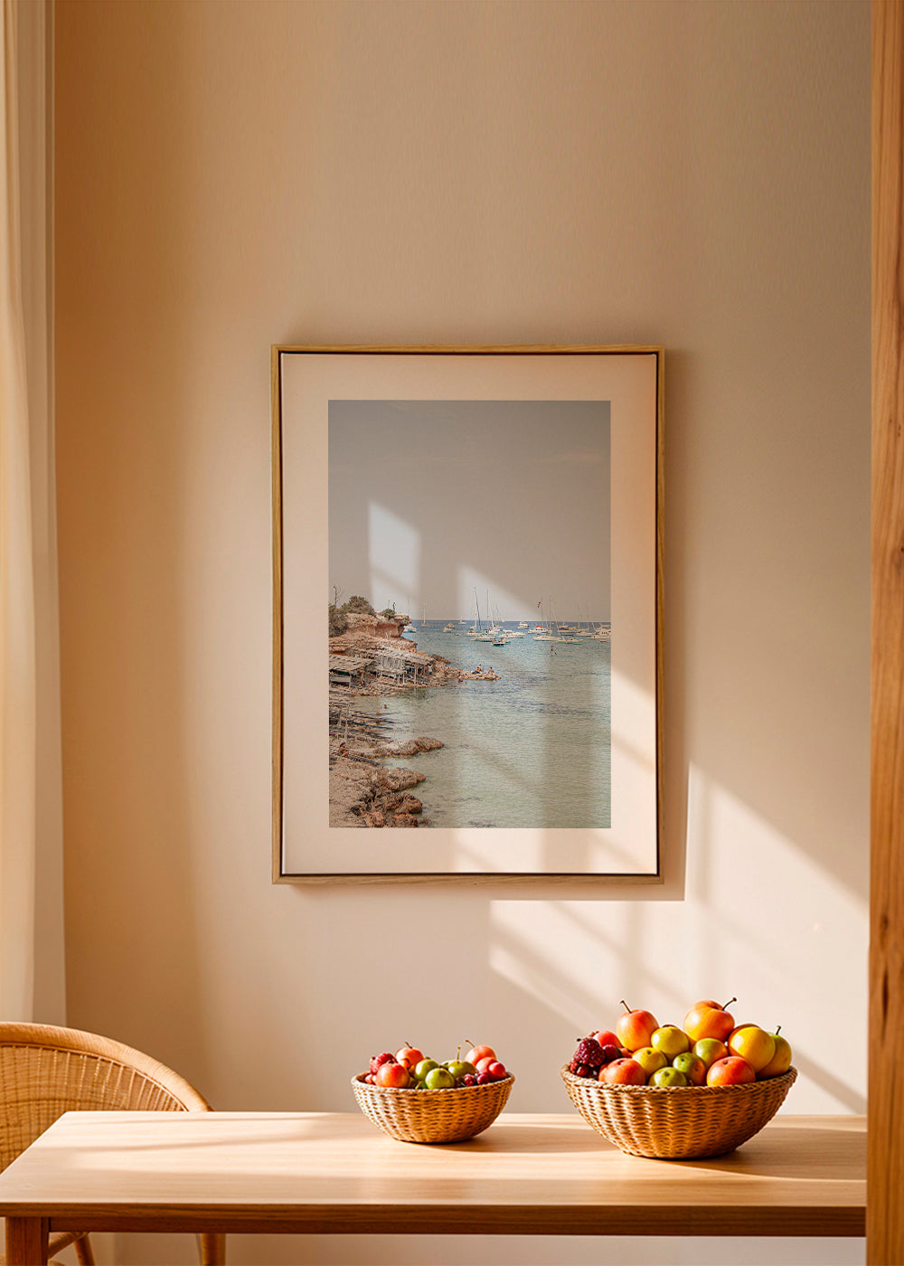 Si vous sélectionnez l'option passe-partout, nous ajouterons le tableau blanc mat au cadre, et nous réduirons le dessin de l'œuvre. Par exemple, si vous sélectionnez un tirage au format 50x70 cm, avec un cadre et un passe-partout couleur chêne, nous réduirons le dessin du tirage au format précédent (40x50cm). Ainsi, il s'adaptera parfaitement à la fenêtre intérieure du passe-partout.