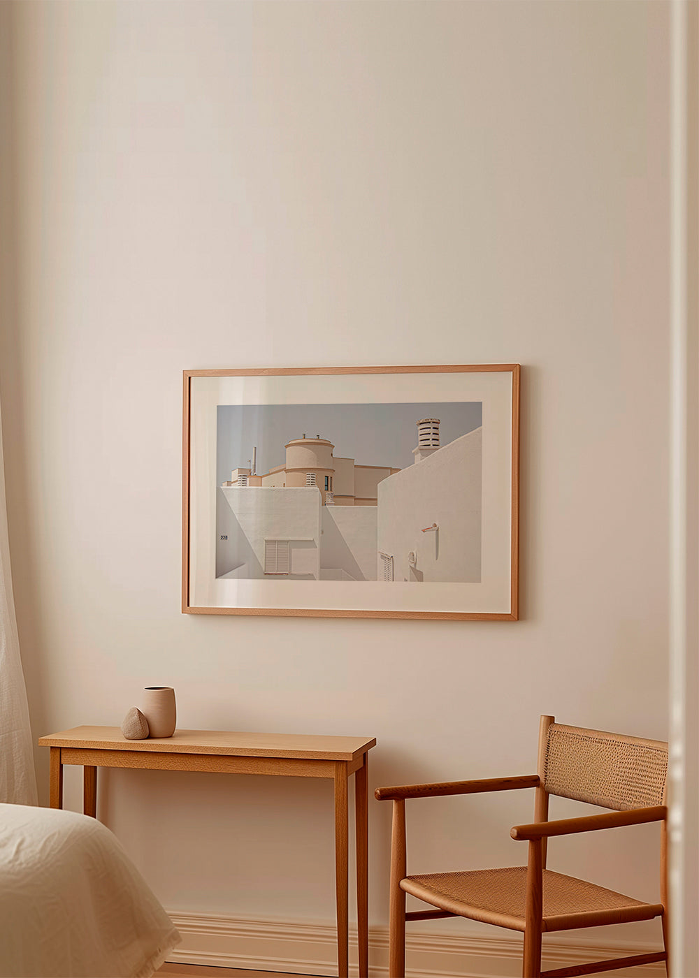 Si vous sélectionnez l'option passe-partout, nous ajouterons le tableau blanc mat au cadre, et nous réduirons le dessin de l'œuvre. Par exemple, si vous sélectionnez un tirage au format 50x70 cm, avec un cadre et un passe-partout couleur chêne, nous réduirons le dessin du tirage au format précédent (40x50cm). Ainsi, il s'adaptera parfaitement à la fenêtre intérieure du passe-partout.
