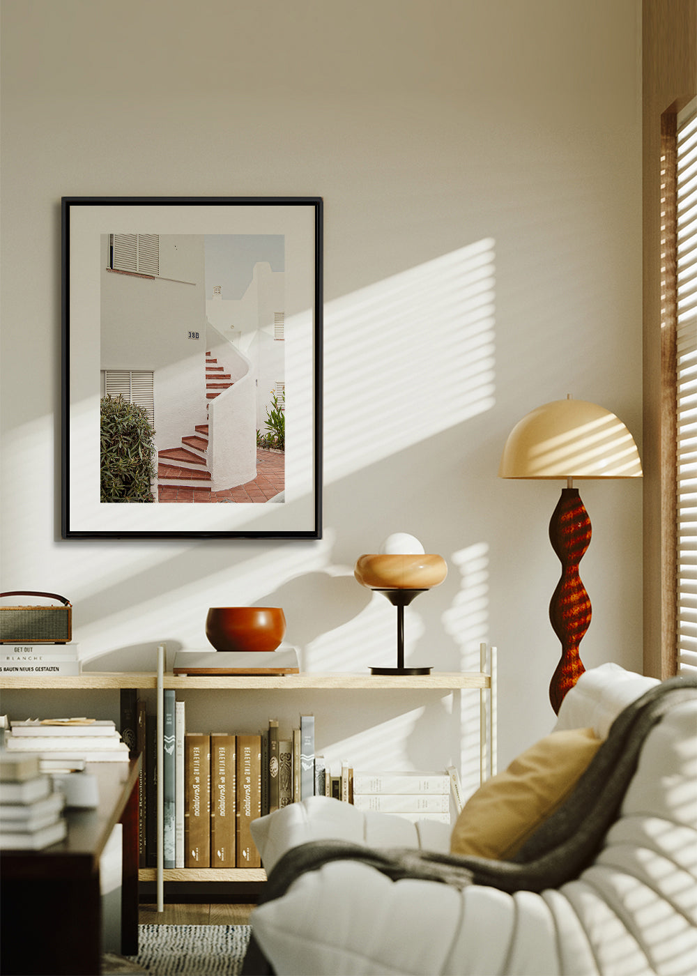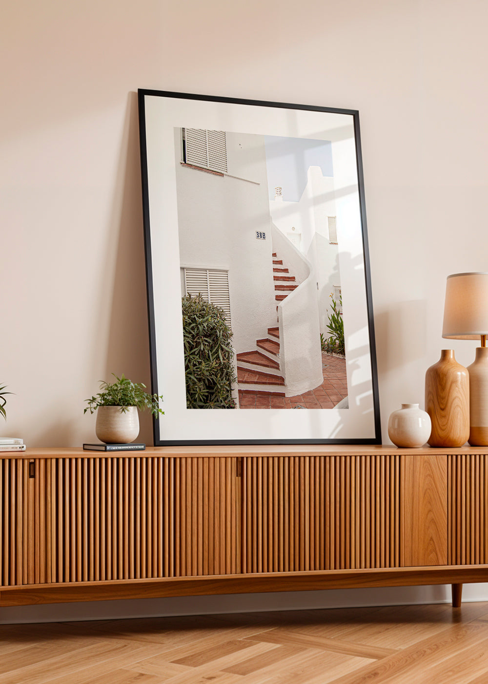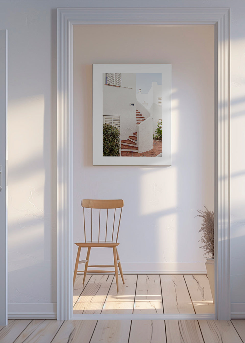 Le passe-partout est un panneau blanc mat qui entoure l'affiche pour la protéger du méthacrylate, et qui améliore également l'expressivité de l'œuvre et met en valeur ses détails.