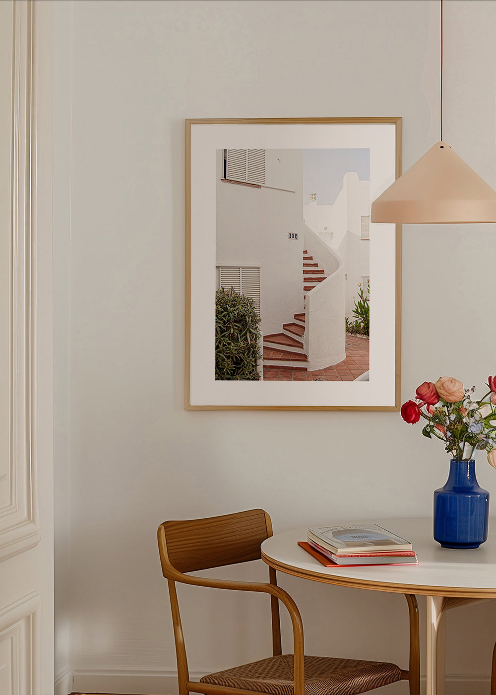 Si vous sélectionnez l'option passe-partout, nous ajouterons le tableau blanc mat au cadre, et nous réduirons le dessin de l'œuvre. Par exemple, si vous sélectionnez un tirage au format 50x70 cm, avec un cadre et un passe-partout couleur chêne, nous réduirons le dessin du tirage au format précédent (40x50cm). Ainsi, il s'adaptera parfaitement à la fenêtre intérieure du passe-partout.