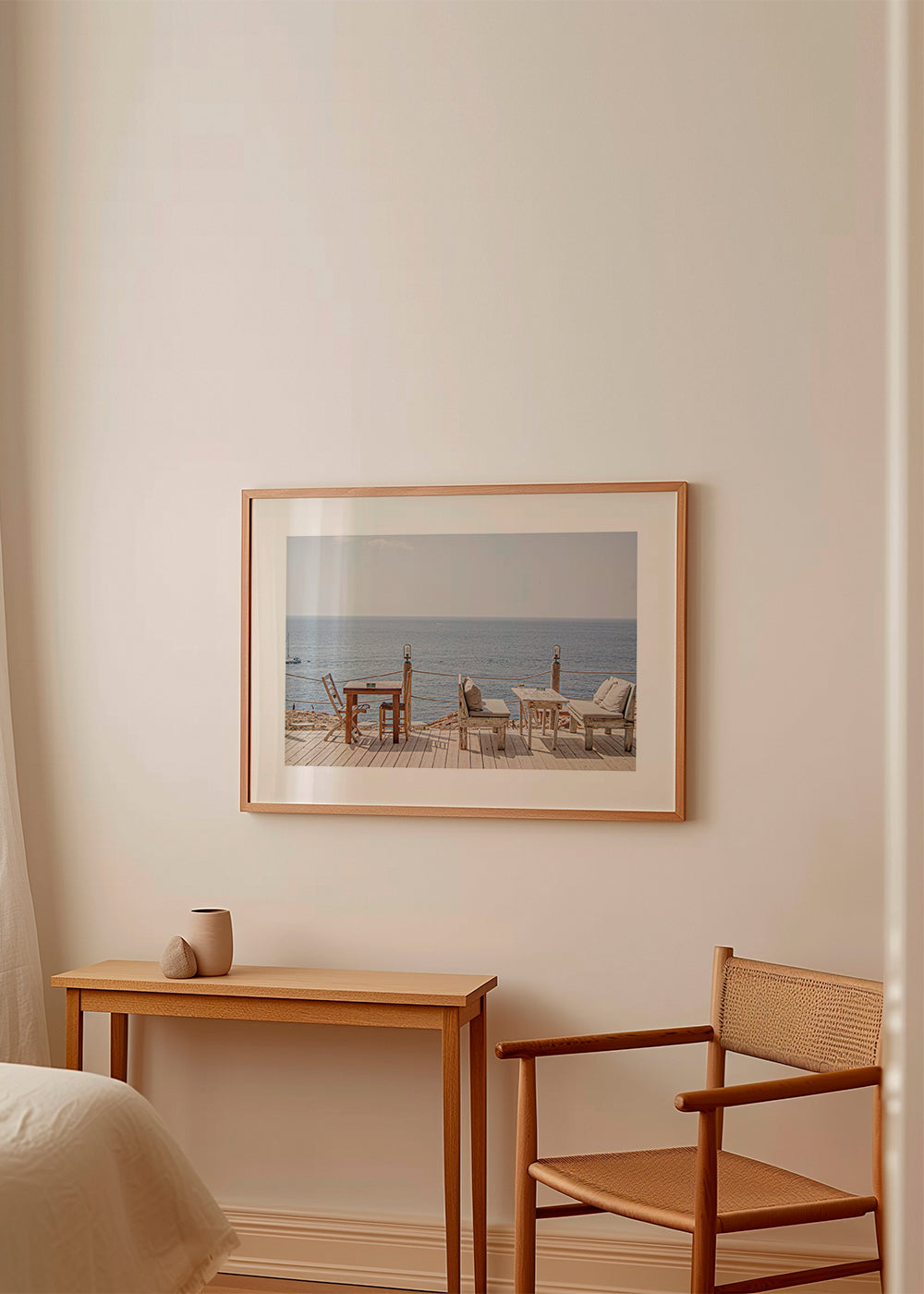Si vous sélectionnez l'option passe-partout, nous ajouterons le tableau blanc mat au cadre, et nous réduirons le dessin de l'œuvre. Par exemple, si vous sélectionnez un tirage au format 50x70 cm, avec un cadre et un passe-partout couleur chêne, nous réduirons le dessin du tirage au format précédent (40x50cm). Ainsi, il s'adaptera parfaitement à la fenêtre intérieure du passe-partout.