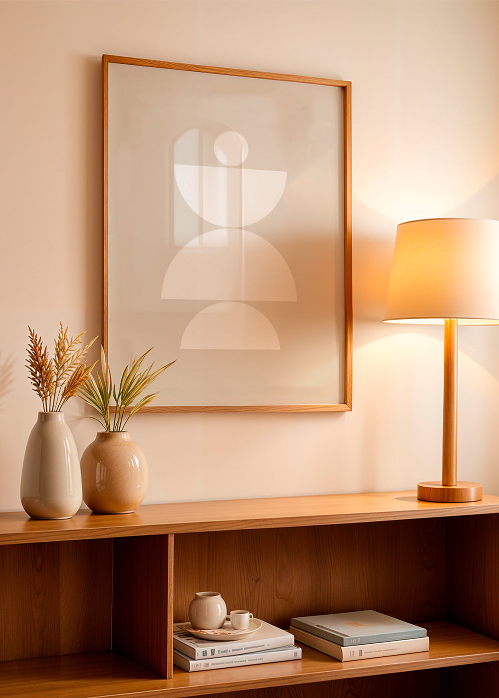Si vous sélectionnez l'option passe-partout, nous ajouterons le tableau blanc mat au cadre, et nous réduirons le dessin de l'œuvre. Par exemple, si vous sélectionnez un tirage au format 50x70 cm, avec un cadre et un passe-partout couleur chêne, nous réduirons le dessin du tirage au format précédent (40x50cm). Ainsi, il s'adaptera parfaitement à la fenêtre intérieure du passe-partout.