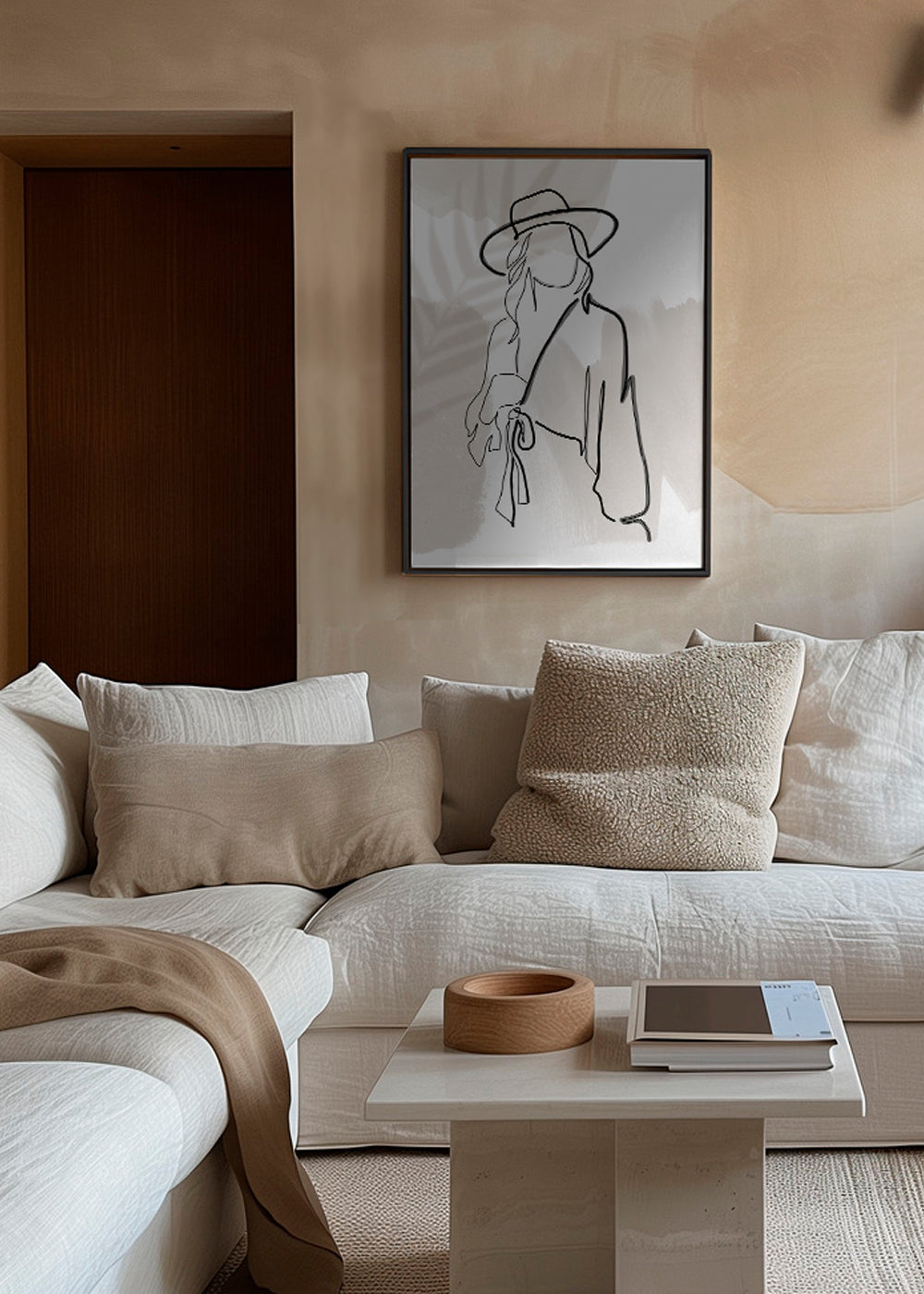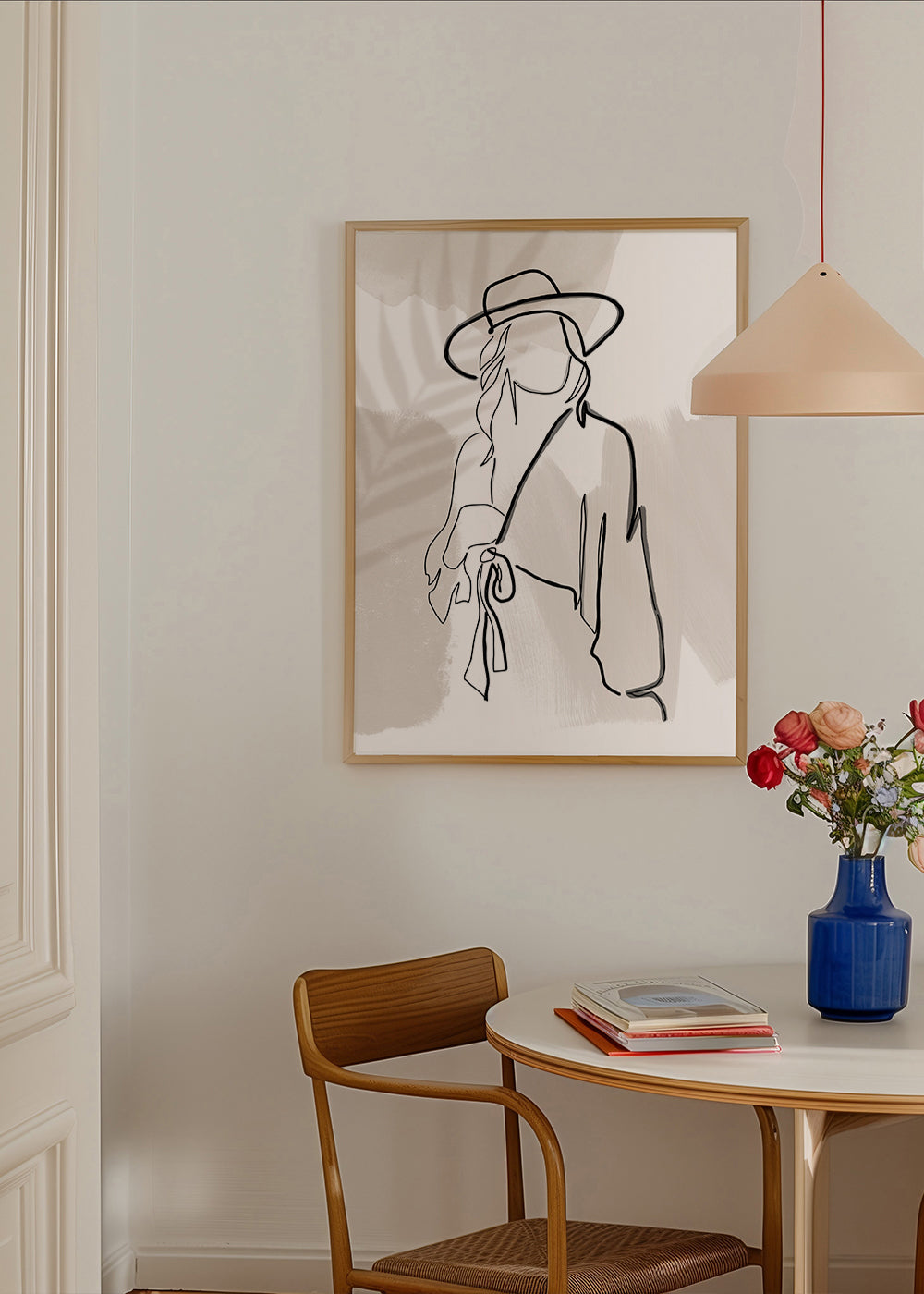 Une plaque avec l'inspiration dans la collection posters femme, faite par Kruth Design, avec des nuances de tons noirs, et en position portrait. Les tableaux avec illustrations donnent une touche originale à la décoration de la maison. Fraîcheur et originalité.