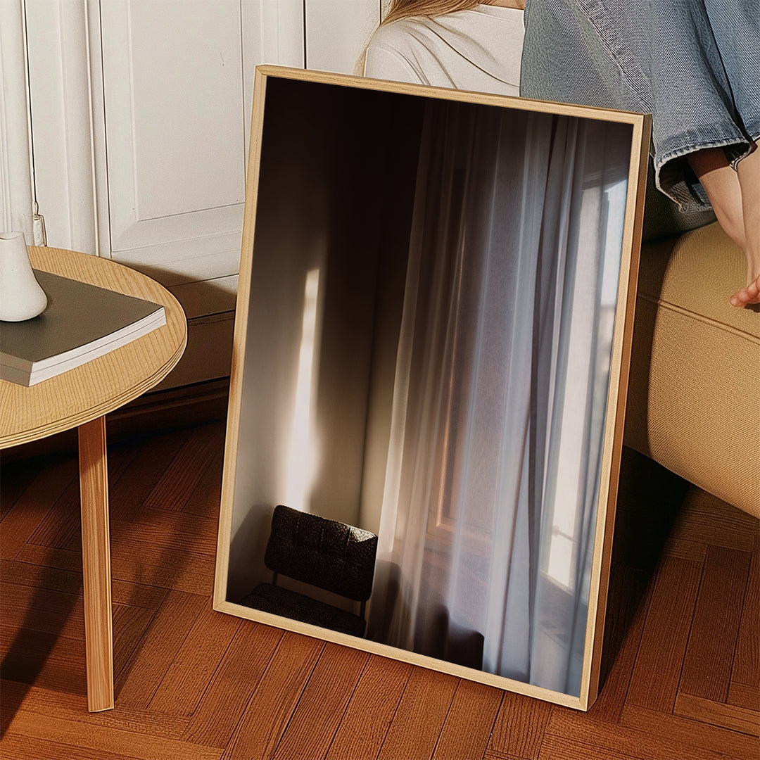 Si vous sélectionnez l'option passe-partout, nous ajouterons le tableau blanc mat au cadre, et nous réduirons le dessin de l'œuvre. Par exemple, si vous sélectionnez un tirage au format 50x70 cm, avec un cadre et un passe-partout couleur chêne, nous réduirons le dessin du tirage au format précédent (40x50cm). Ainsi, il s'adaptera parfaitement à la fenêtre intérieure du passe-partout.