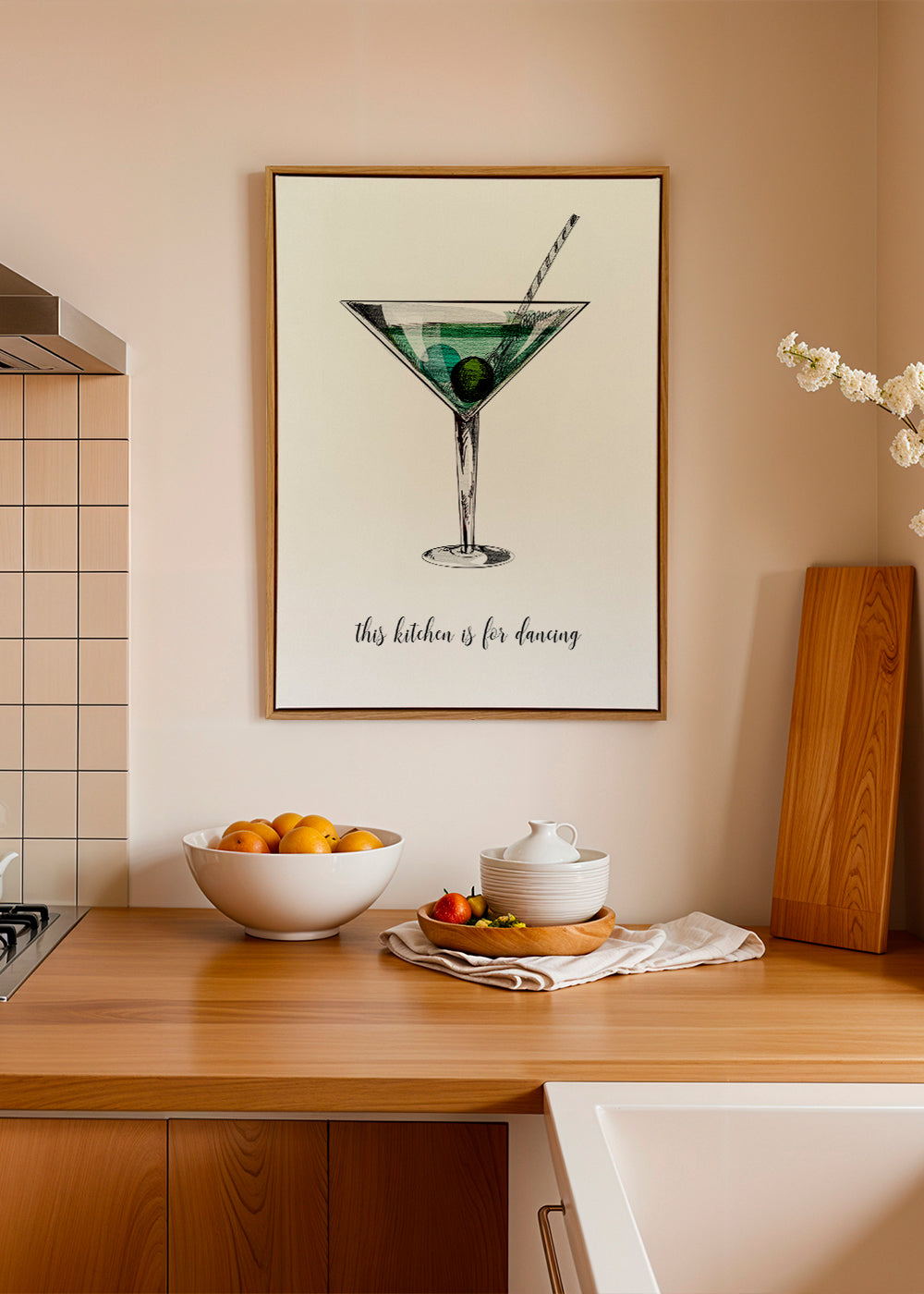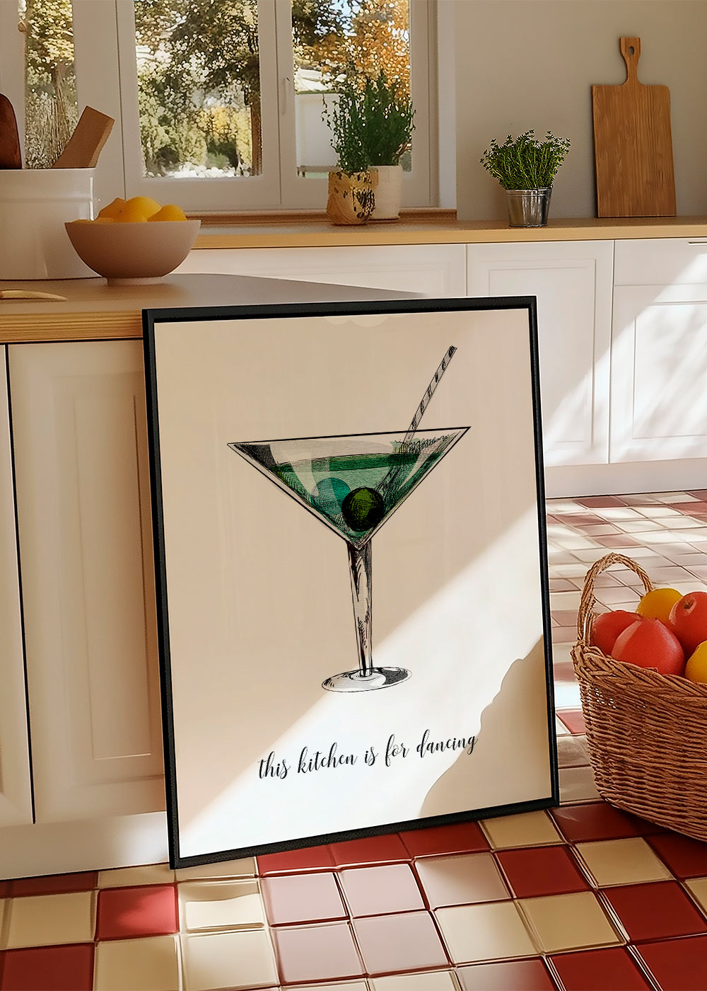 Ce tableau de la collection affiches cocktails, de la collection de l'artiste KUBISTIKA, avec des touches verts, et à mettre en portrait. Décorer la cuisine n’a jamais été aussi facile ! Ajoutez du style aux murs de votre cuisine grâce à cette plaque. Créez un environnement unique.