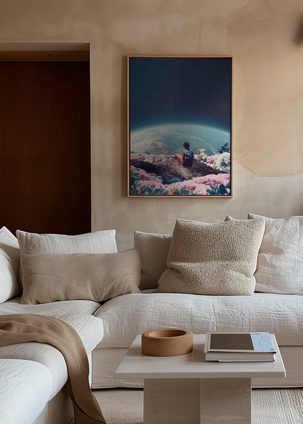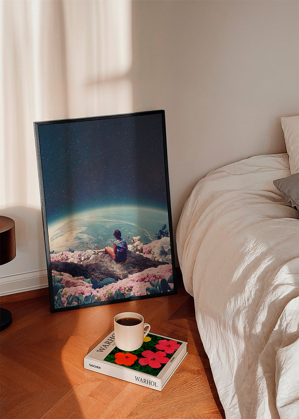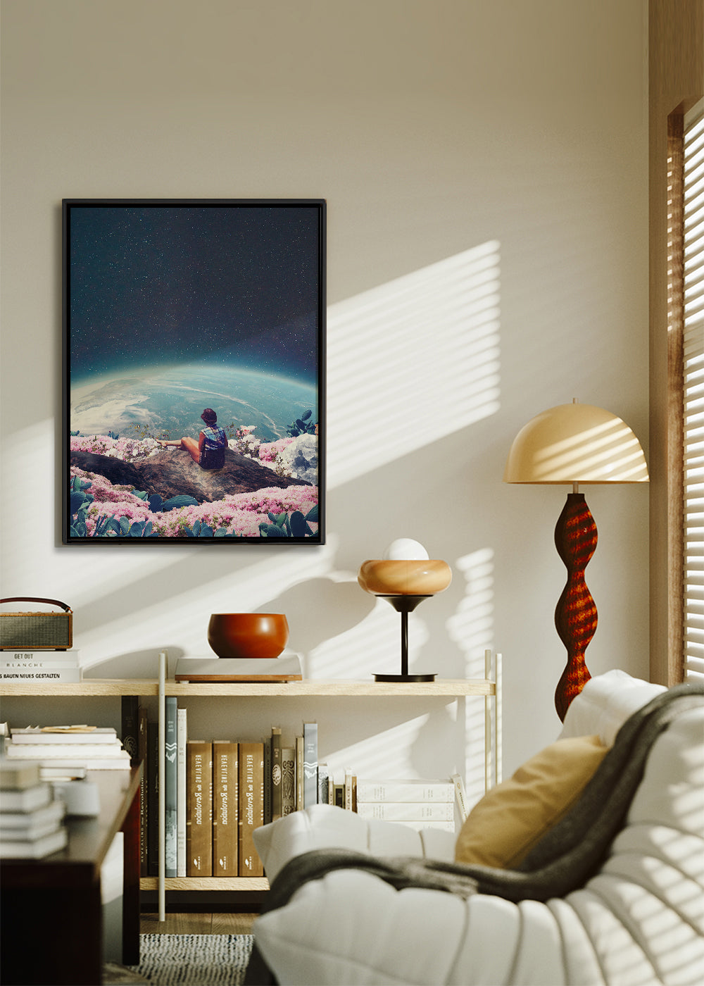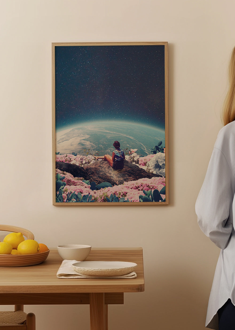 Ce affiche appartenant à la catégorie affiches planète, appartenant à la collection de Frank Moth, avec des touches bleus, et à mettre en portrait. Une œuvre de style rétro idéale pour une décoration aux touches vintage . La touche ultime pour la décoration de votre maison.