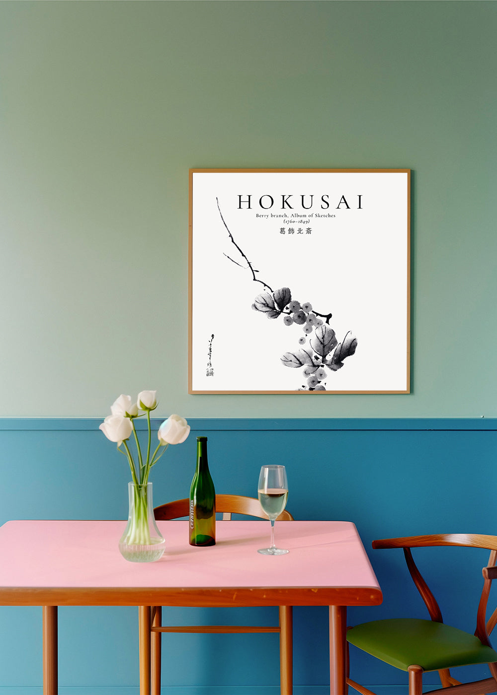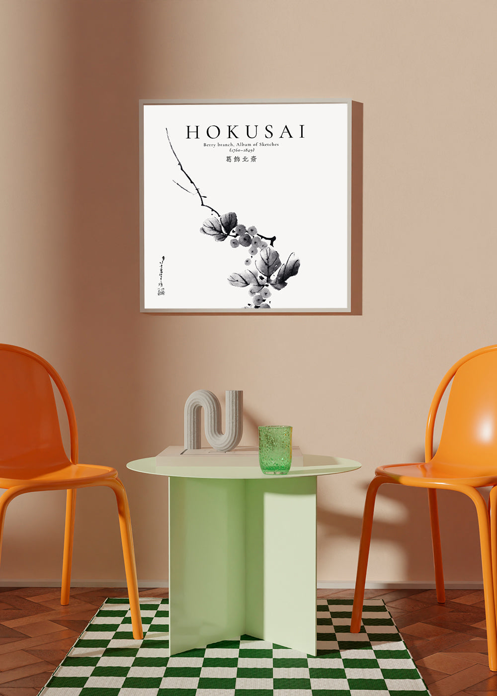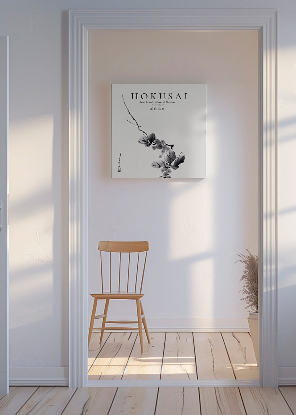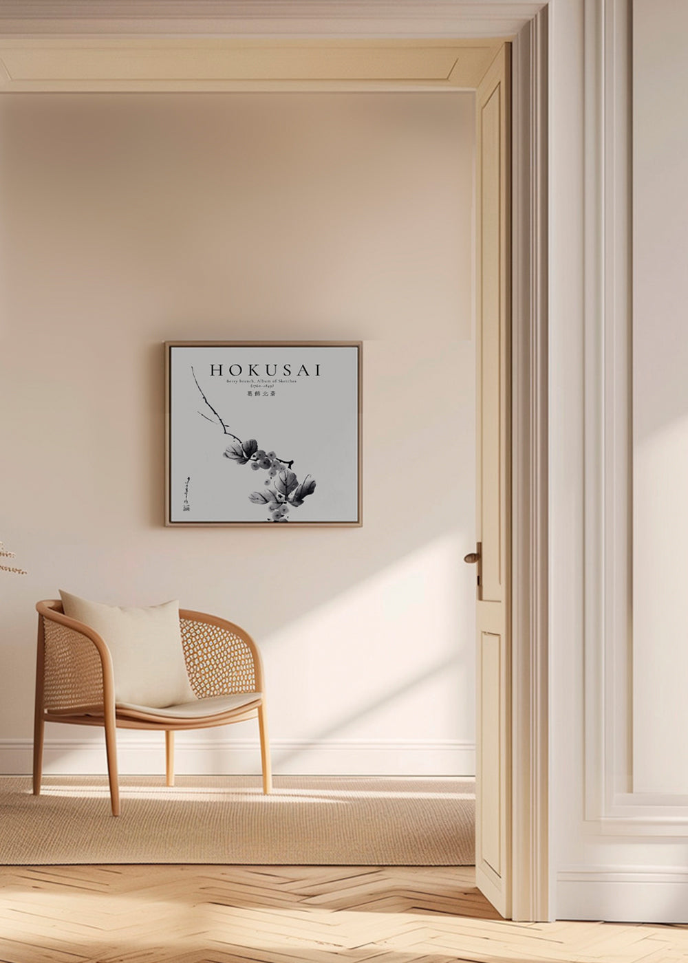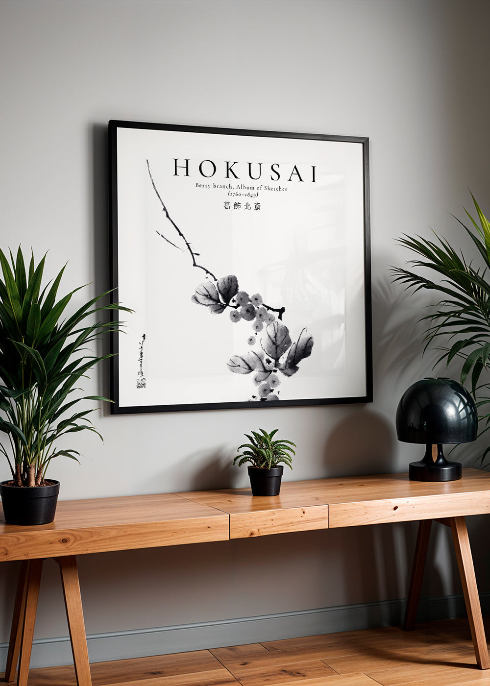 Tableau noir et blanc Berry branch by Katsushika Hokusai - Square