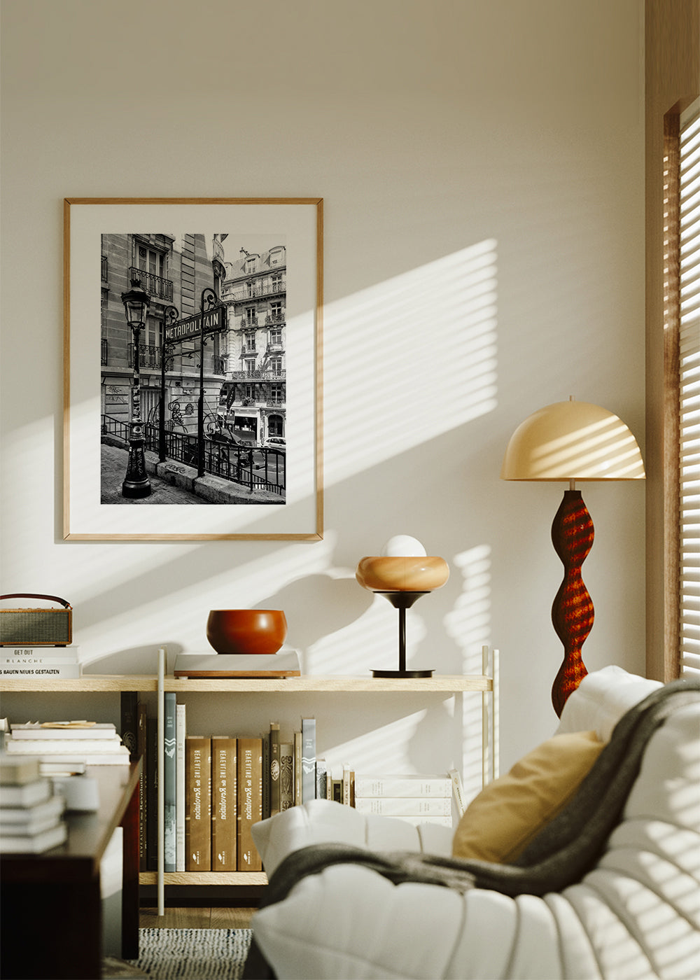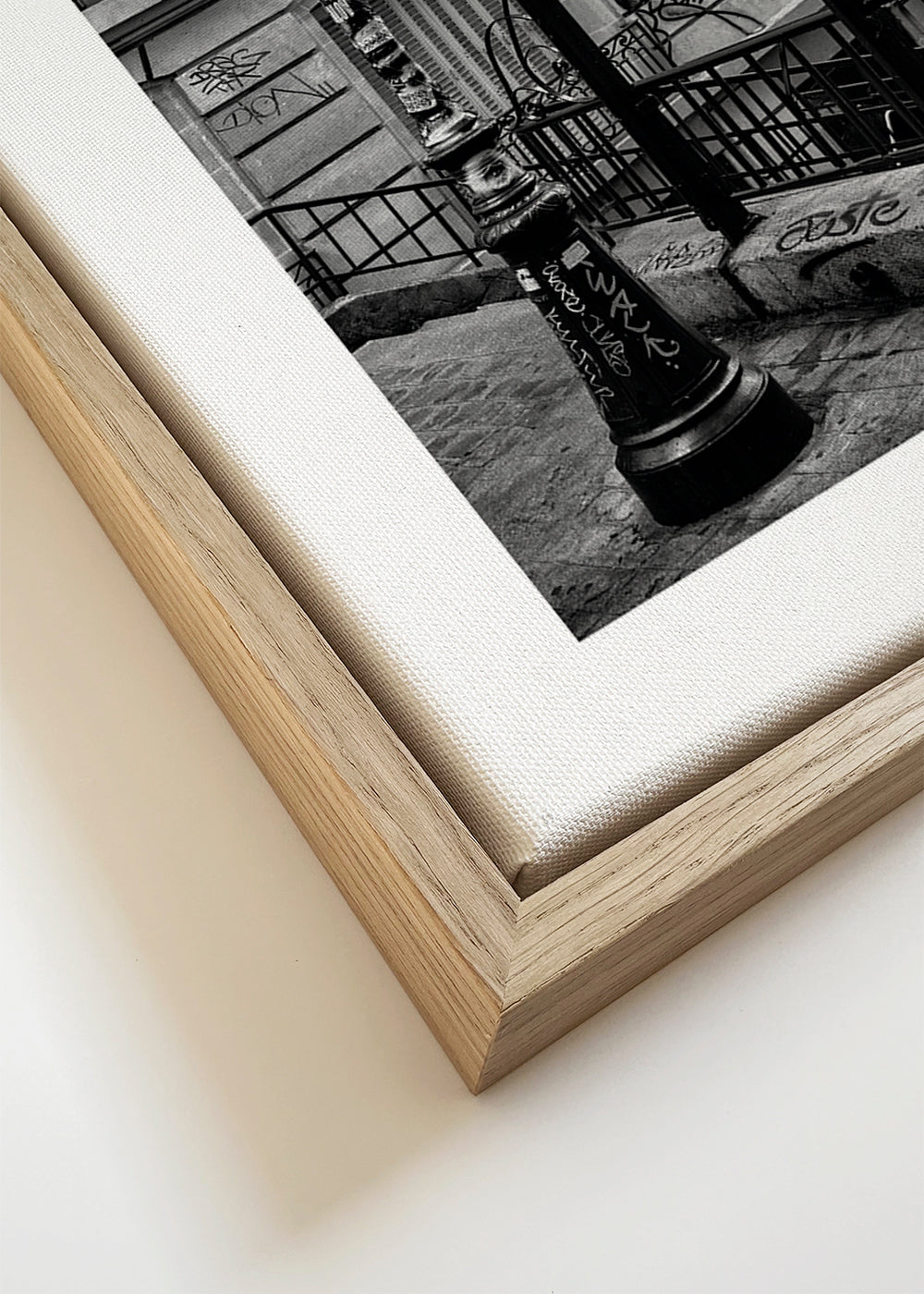 Si vous sélectionnez l'option passe-partout, nous ajouterons le tableau blanc mat au cadre, et nous réduirons le dessin de l'œuvre. Par exemple, si vous sélectionnez un tirage au format 50x70 cm, avec un cadre et un passe-partout couleur chêne, nous réduirons le dessin du tirage au format précédent (40x50cm). Ainsi, il s'adaptera parfaitement à la fenêtre intérieure du passe-partout.