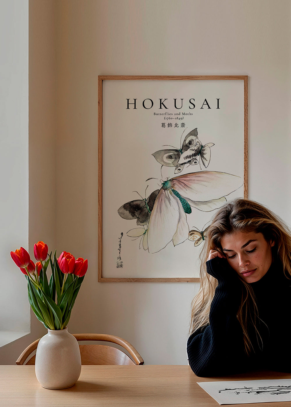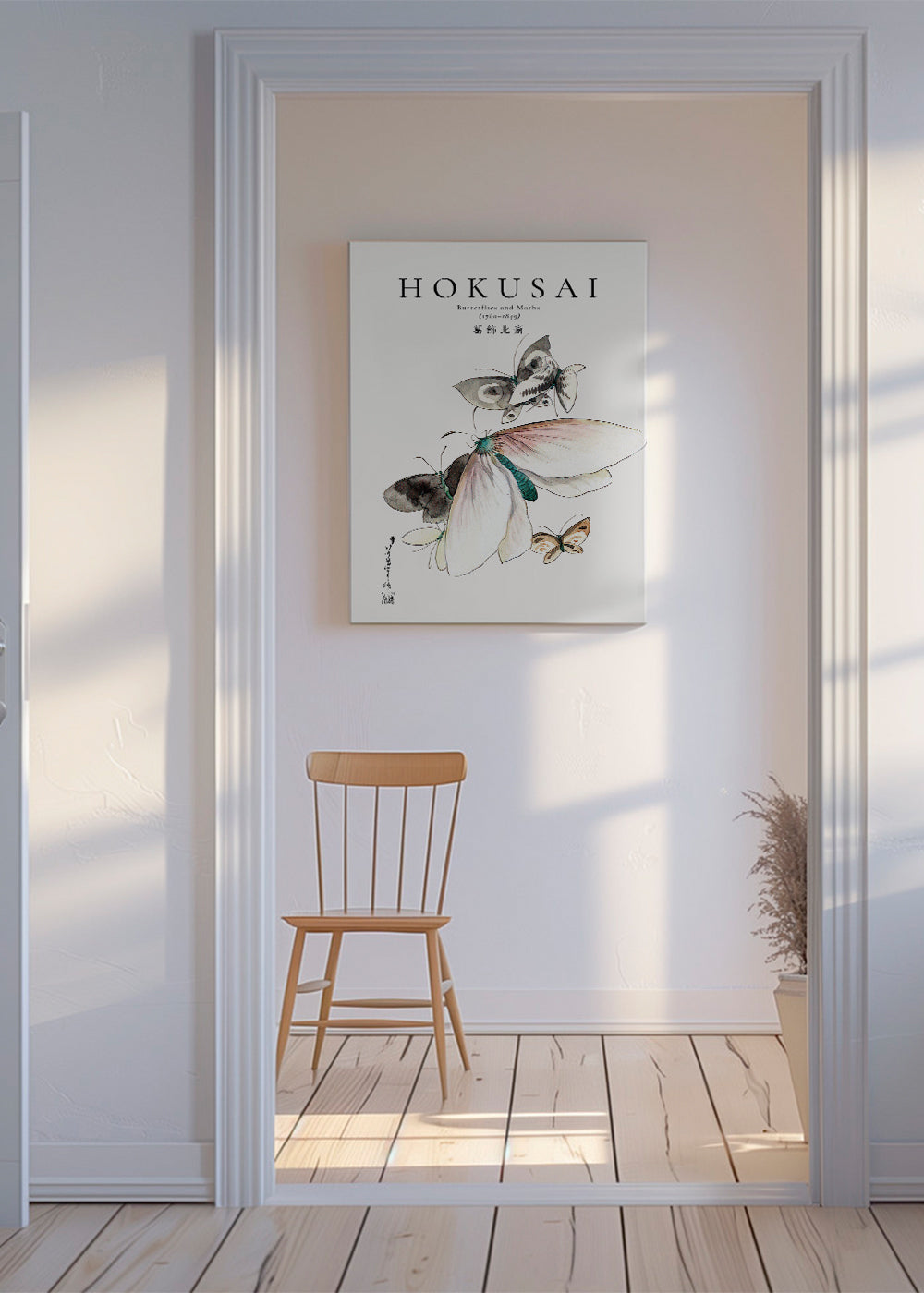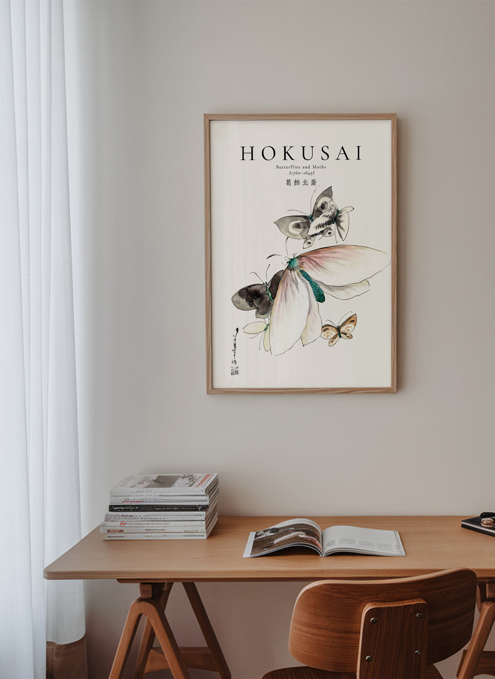 Tableau noir et blanc Butterflies and Moths by Katsushika Hokusai