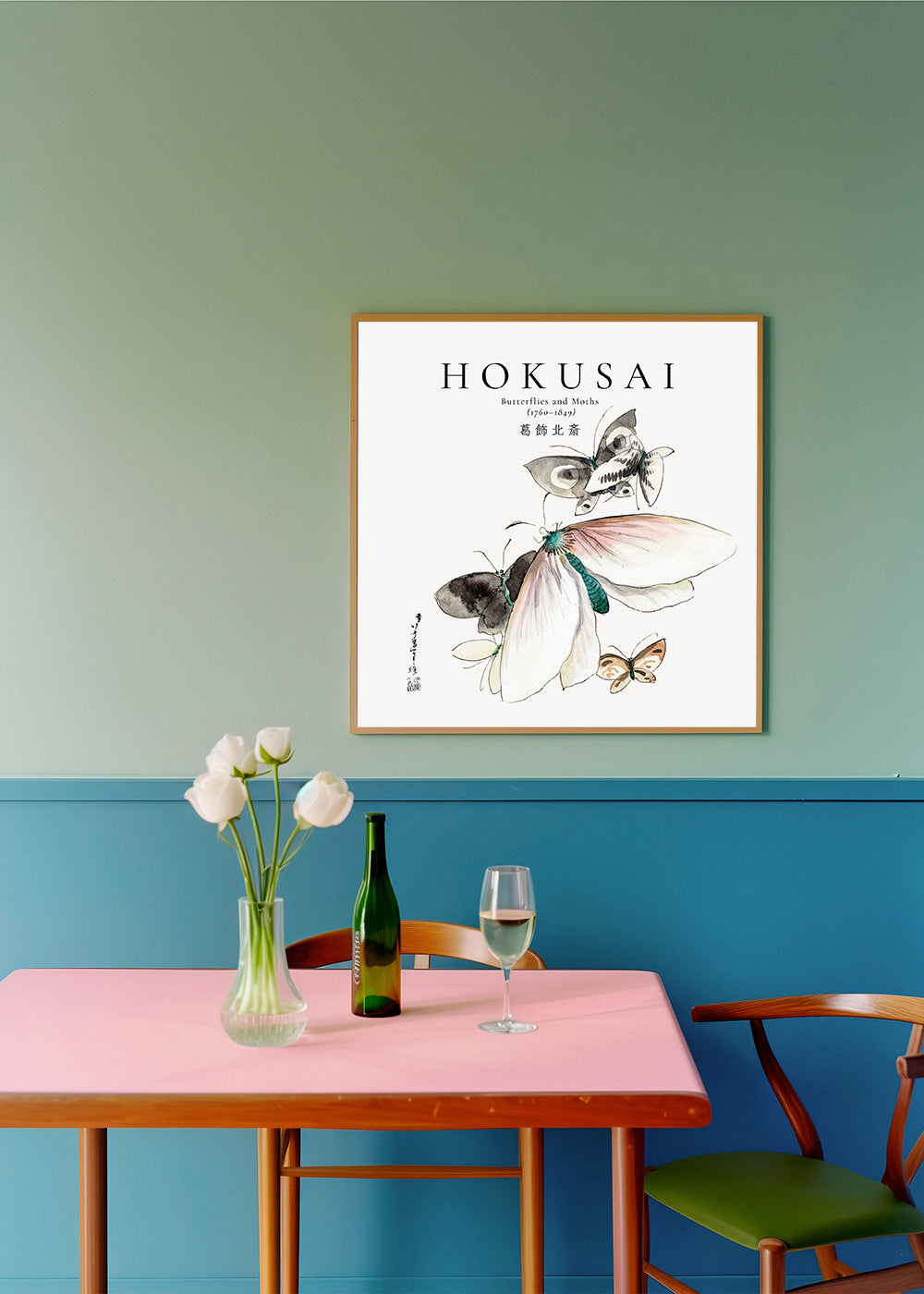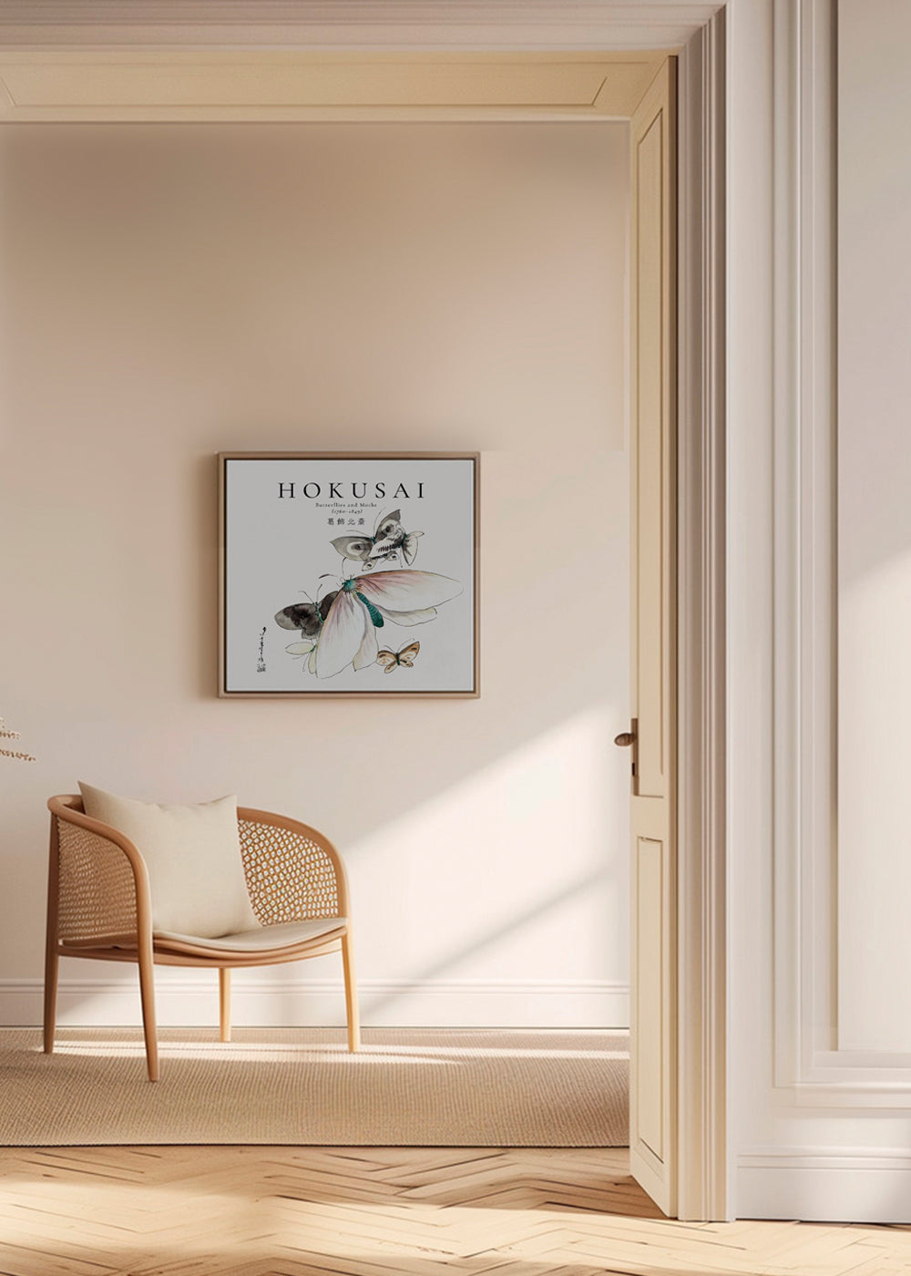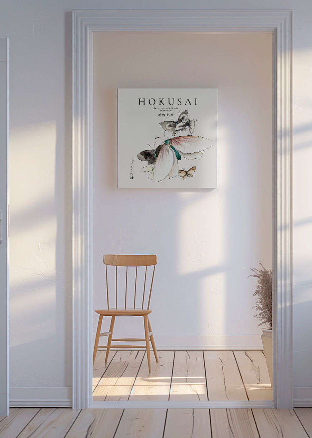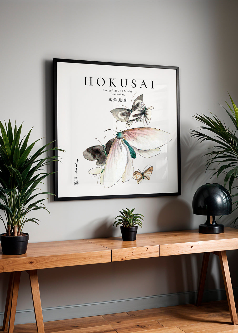 Tableau noir et blanc Butterflies and Moths by Katsushika Hokusai - Square