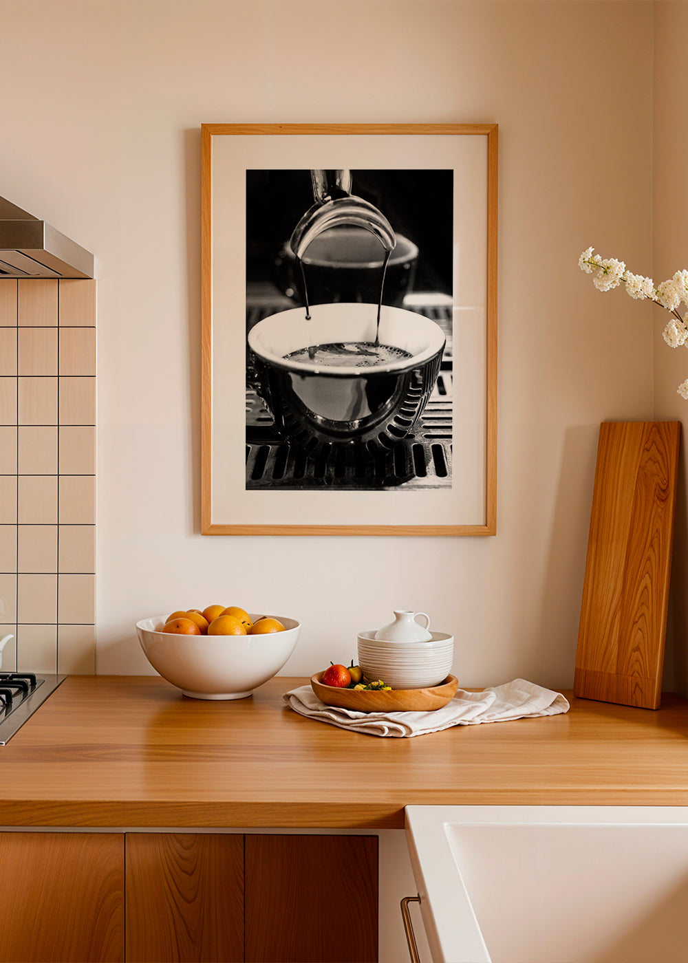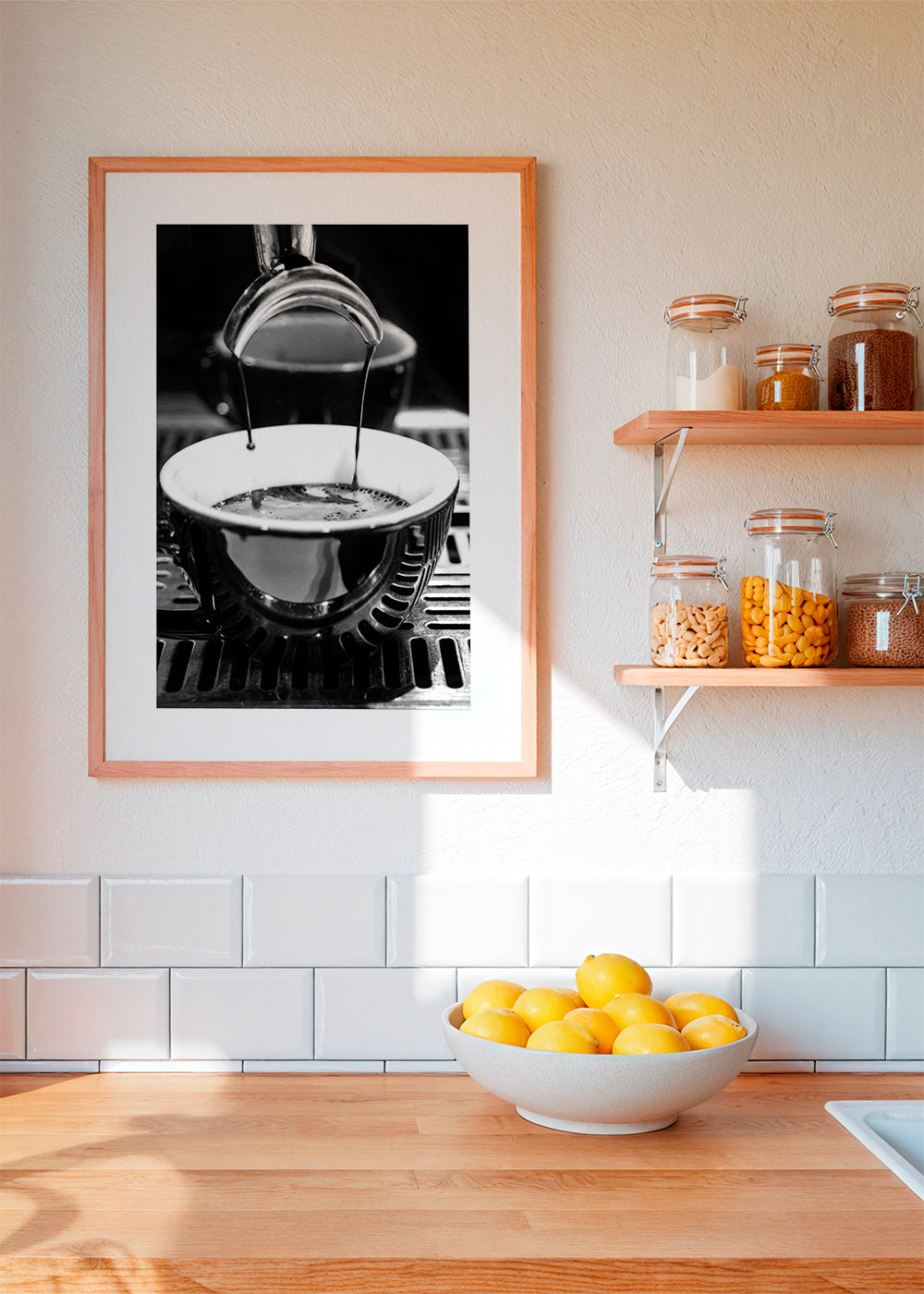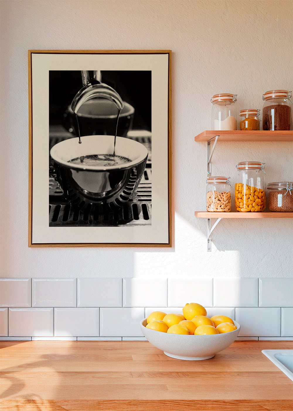 Jolie oeuvre de notre sélection affiches café, avec les couleurs monochromes, et dans une orientation portrait. Les photos à encadrer aident à moderniser l'espace de la maison. Donnez vie aux murs de votre maison. Ce modèle comprend une bordure blanche qui ajoute du contraste à l'œuvre.