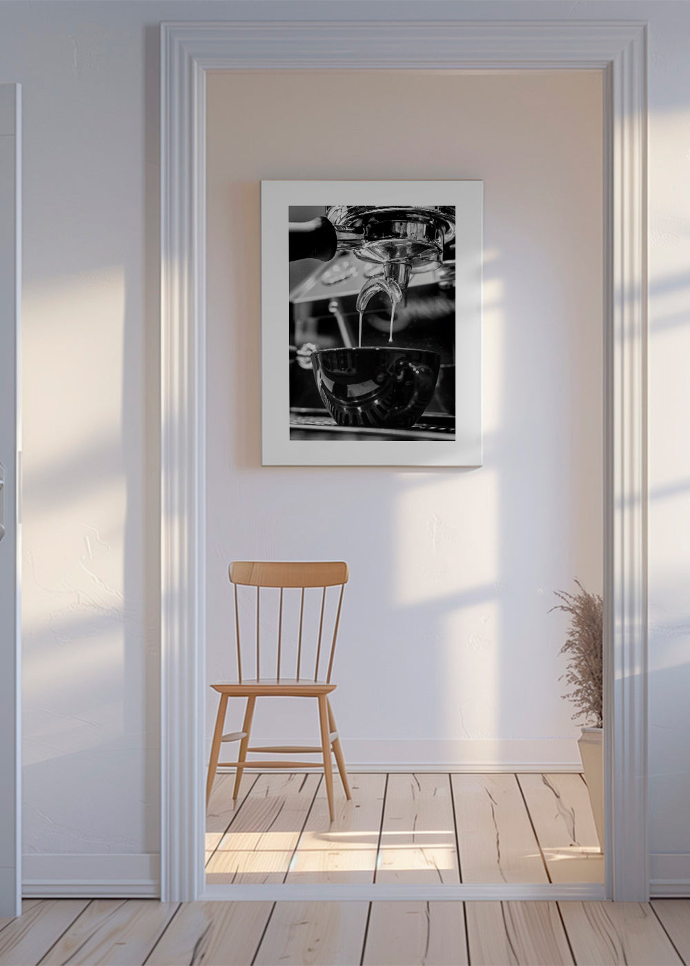 Un poster de notre collection affiches café, avec des nuances de couleurs monochromes, et pour mettre en position portrait. Une jolie photo peut faire la différence entre un espace ennuyeux et un espace original. L'ajout de photographies artistiques à la décoration est une option qui ne manque jamais. Créez de petits espaces remplis d'art. Cette œuvre comprend une bordure blanche qui encadre le modèle pour en rehausser le style.