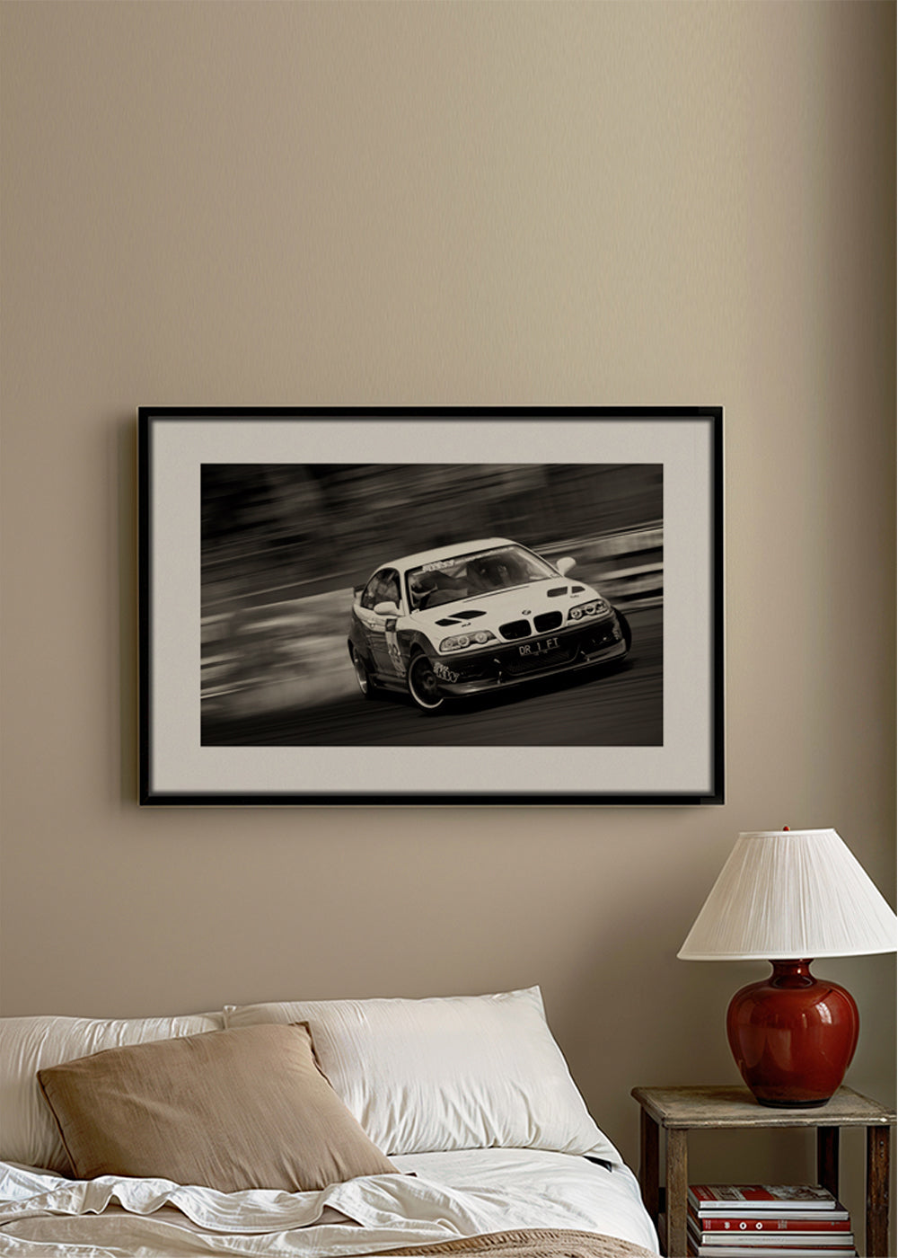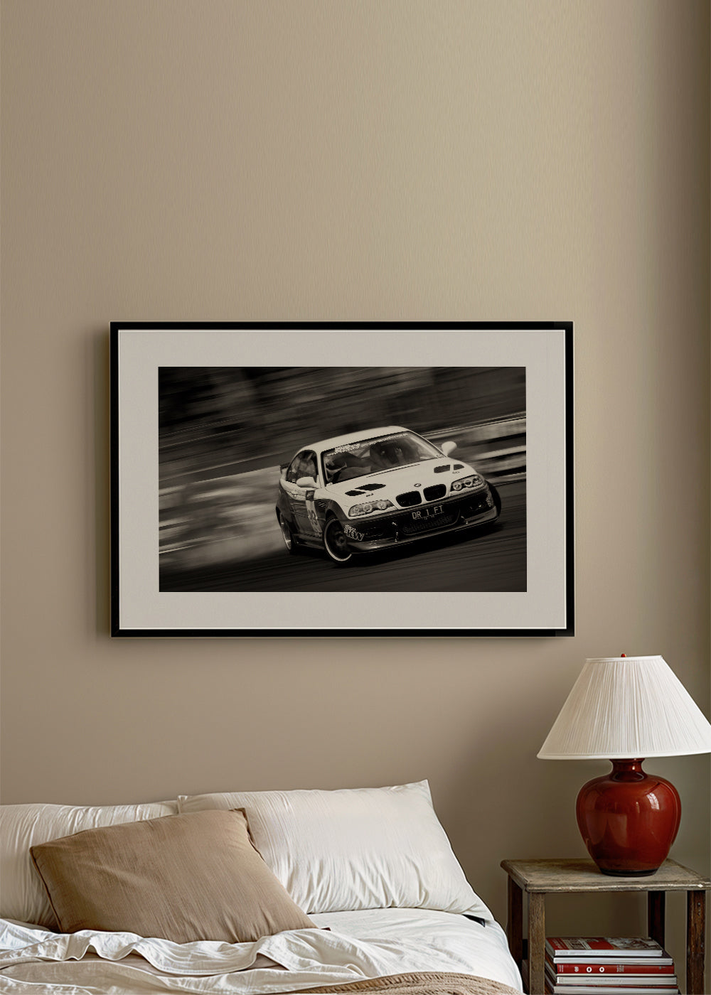 Ce poster de notre sélection affiches voiture, avec les couleurs monochromes, et pour mettre en position format paysage. Une jolie photo peut faire la différence entre un espace ennuyeux et un espace original. L'ajout de photographies artistiques à la décoration est une option qui ne manque jamais. Art pur et design. La marge blanche qui entoure l'image renforce l'expressivité de l'œuvre.