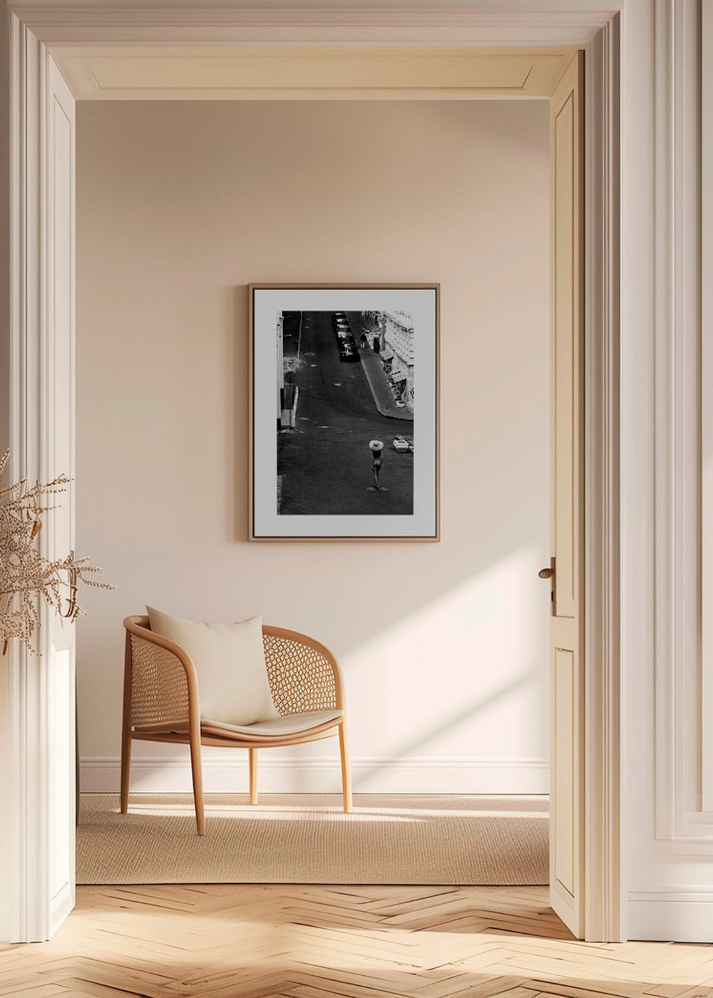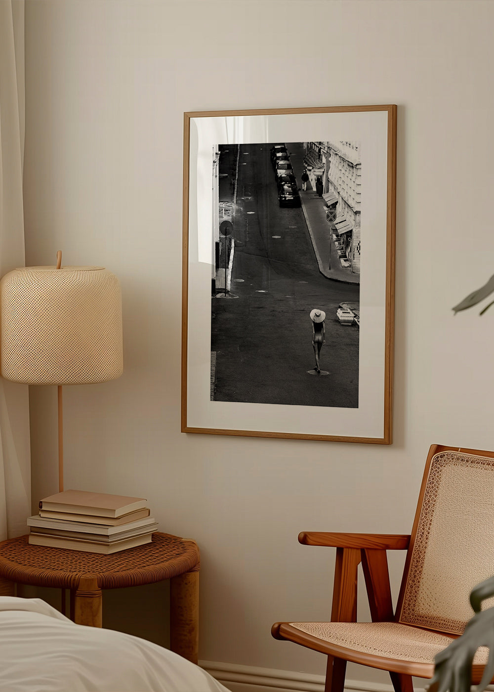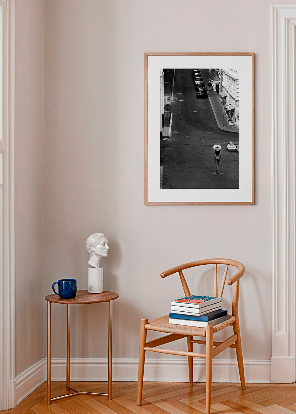 Si vous sélectionnez l'option passe-partout, nous ajouterons le tableau blanc mat au cadre, et nous réduirons le dessin de l'œuvre. Par exemple, si vous sélectionnez un tirage au format 50x70 cm, avec un cadre et un passe-partout couleur chêne, nous réduirons le dessin du tirage au format précédent (40x50cm). Ainsi, il s'adaptera parfaitement à la fenêtre intérieure du passe-partout.