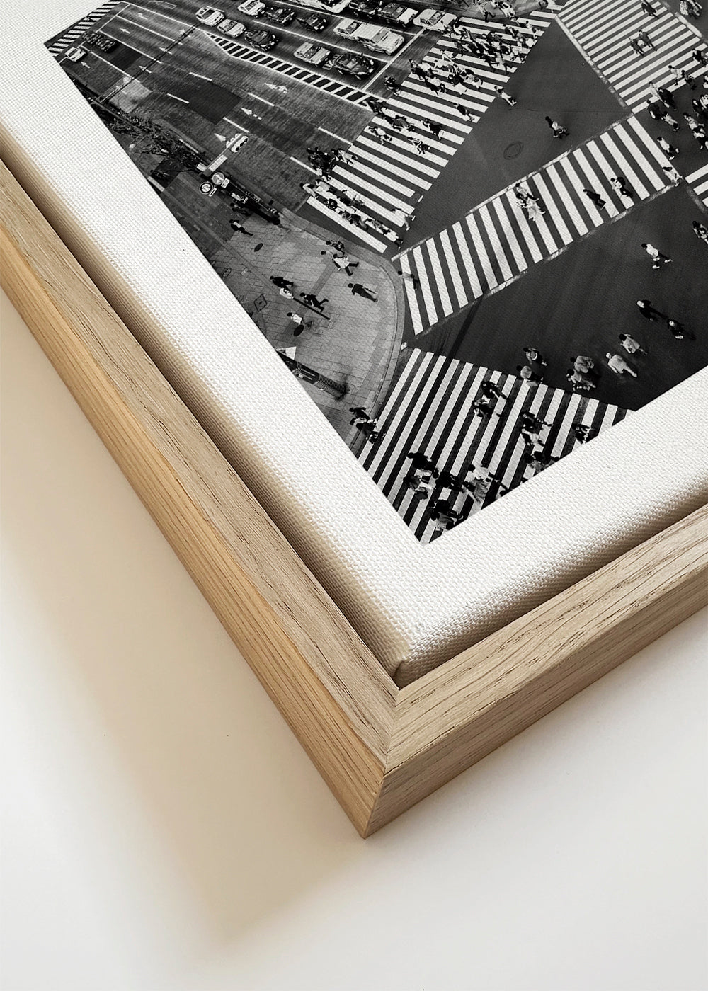 Si vous sélectionnez l'option passe-partout, nous ajouterons le tableau blanc mat au cadre, et nous réduirons le dessin de l'œuvre. Par exemple, si vous sélectionnez un tirage au format 50x70 cm, avec un cadre et un passe-partout couleur chêne, nous réduirons le dessin du tirage au format précédent (40x50cm). Ainsi, il s'adaptera parfaitement à la fenêtre intérieure du passe-partout.