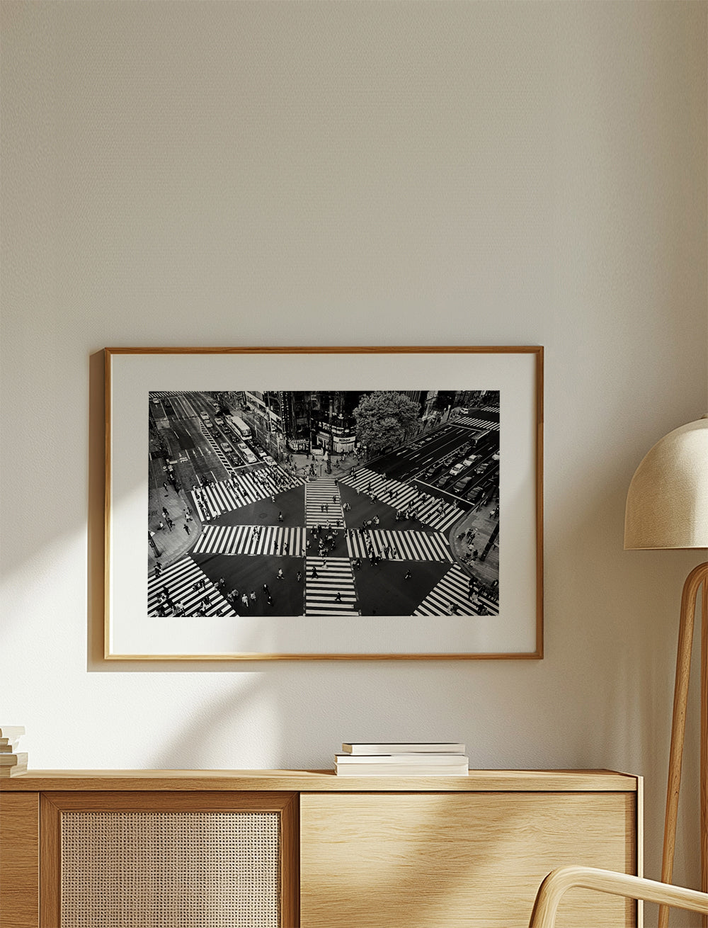 Le passe-partout est un panneau blanc mat qui entoure l'affiche pour la protéger du méthacrylate, et qui améliore également l'expressivité de l'œuvre et met en valeur ses détails.