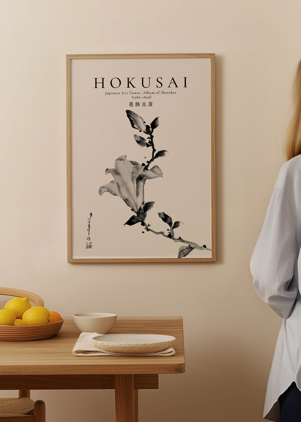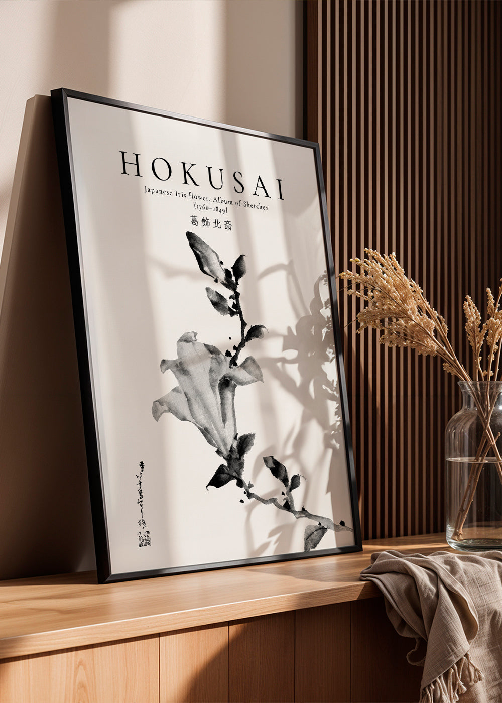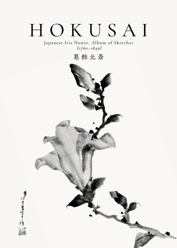 Tableau noir et blanc Japanese Iris flower by Katsushika Hokusai
